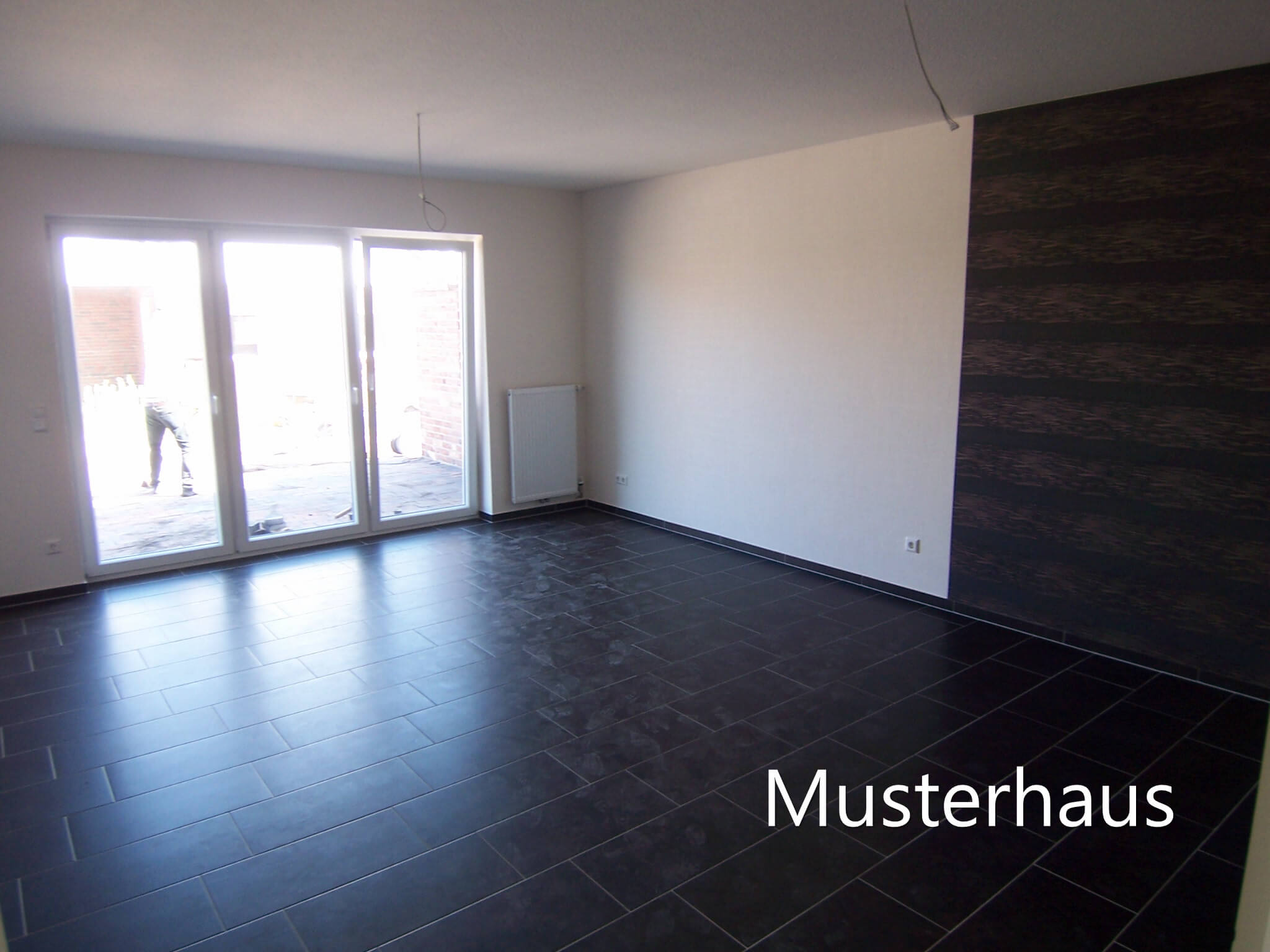 Hier kann der Erwerber frei wählen. Vorgesehen ist, dass der gesamte Erdgeschossbereich verfliest wird. Das Schlafzimmer könnte auch mit einem Designerboden bestückt werden. Der Dachgeschossbereich kann ebenfalls verfliest werden oder mit einem Designerboden ausgelegt werden.