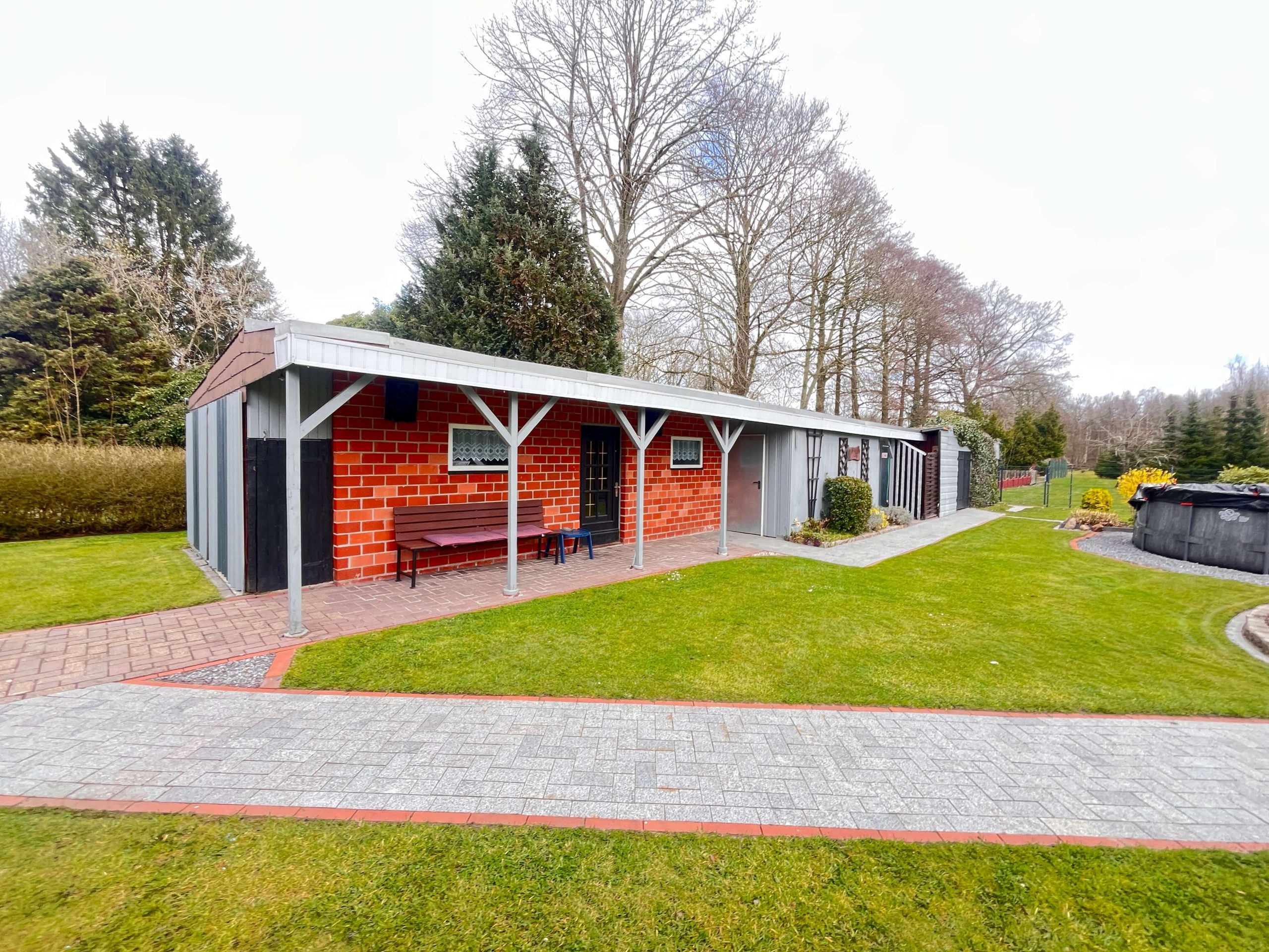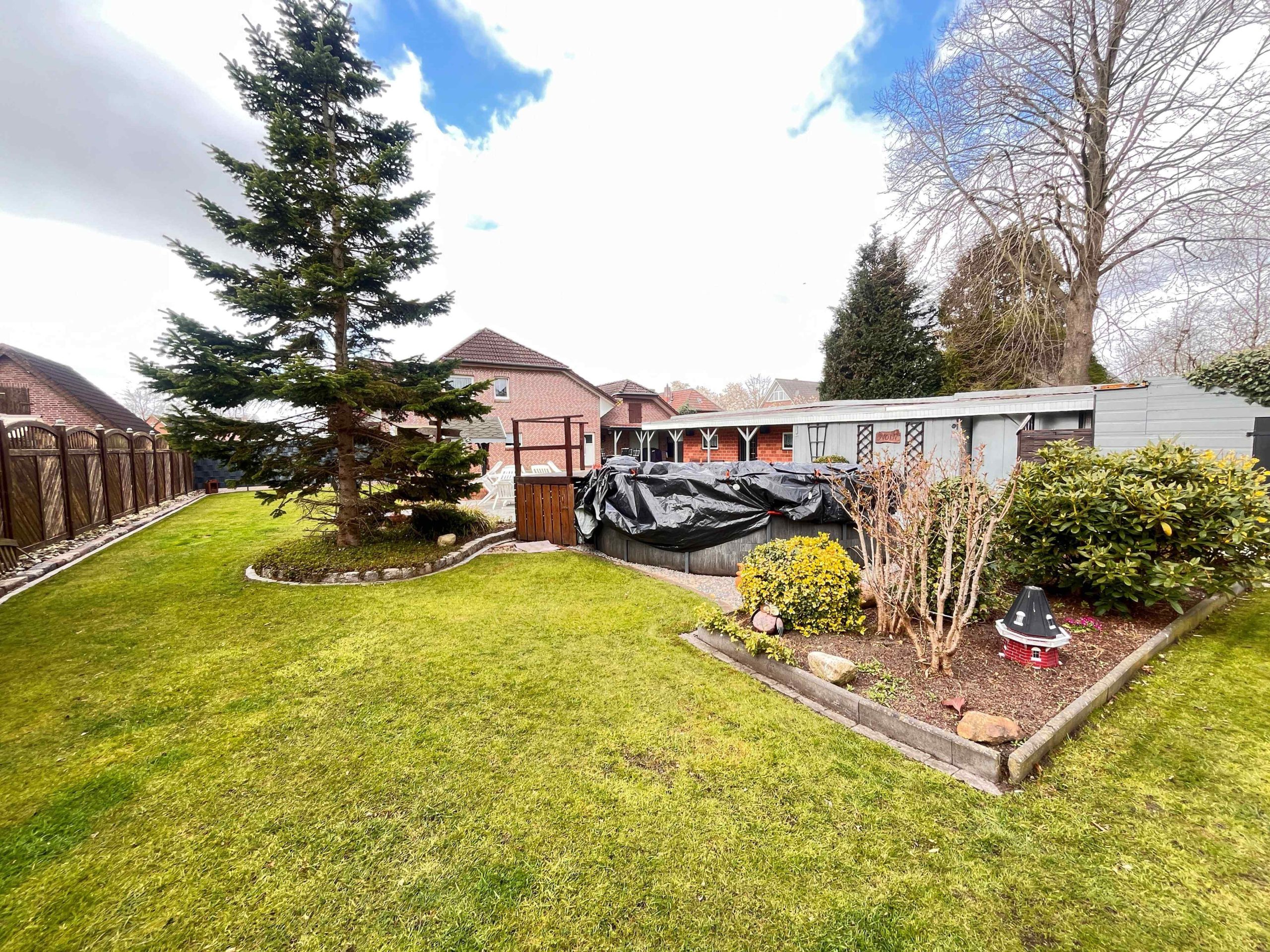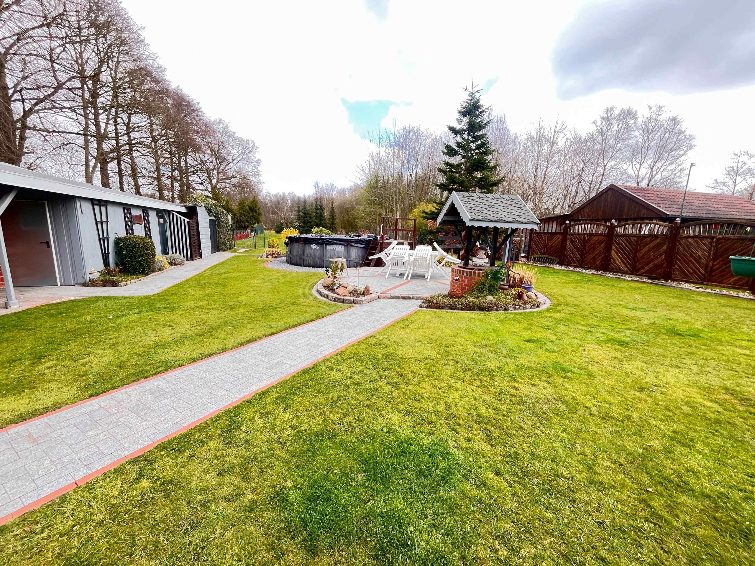 Die gepflegte Außenanlage bietet reichlich Platz für individuelle Gestaltungsmöglichkeiten. Das weitläufige Grundstück ist ideal für Hobbygärtner oder Tierliebhaber und lädt dazu ein, die Natur in vollen Zügen zu genießen. Ein Nebengebäude dient als praktischer Geräte- und Hobbyraum und bietet zusätzliche Nutzfläche.