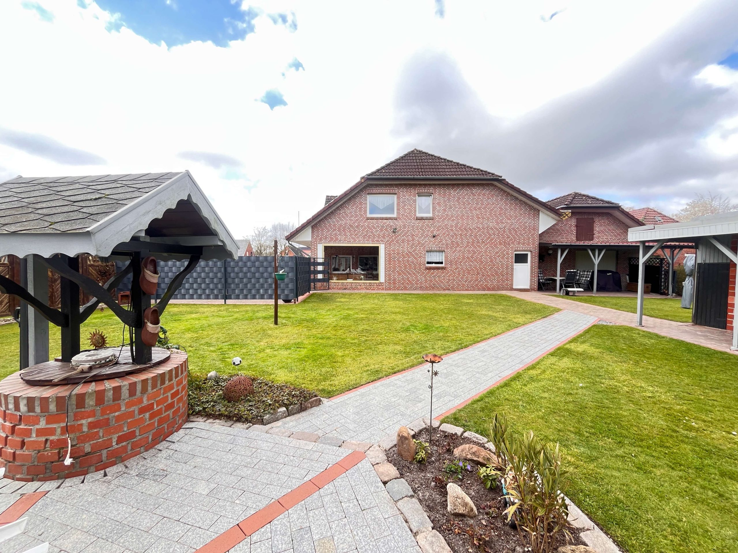 Das weitläufige Grundstück von rund 4.695 m² bietet eine Vielzahl an Gestaltungsmöglichkeiten. Ob ein großer Garten, eine Spielwiese für Kinder oder Platz für Kleintierhaltung – hier können Sie Ihre individuellen Wohnträume verwirklichen. Ein weiteres Highlight ist das Nebengebäude auf dem Grundstück, das sich ideal als Geräte- oder Hobbyraum nutzen lässt. Mit zwei separaten Zufahrten zu den Garagen bietet das Haus zudem ein hohes Maß an Komfort und Flexibilität.