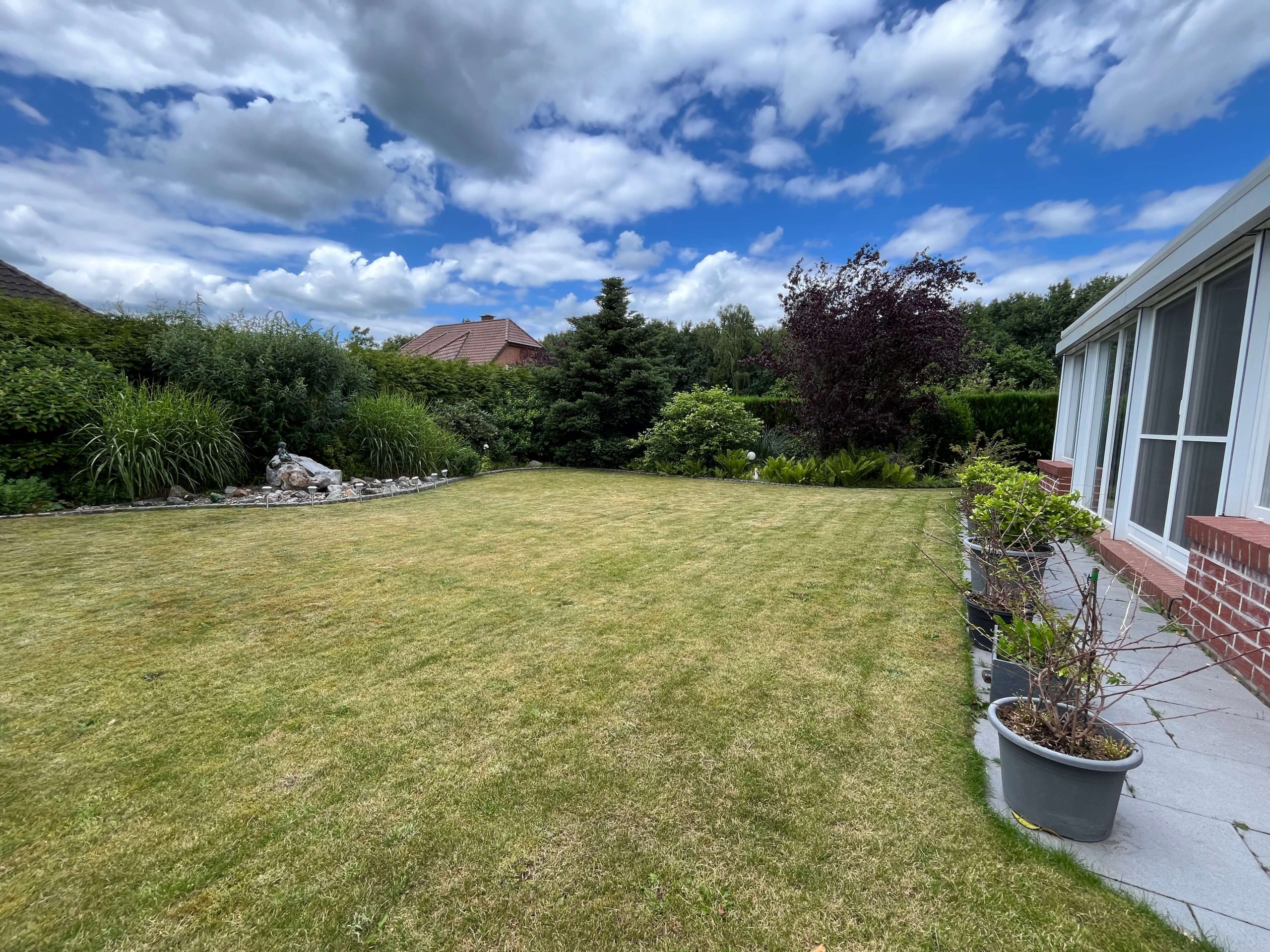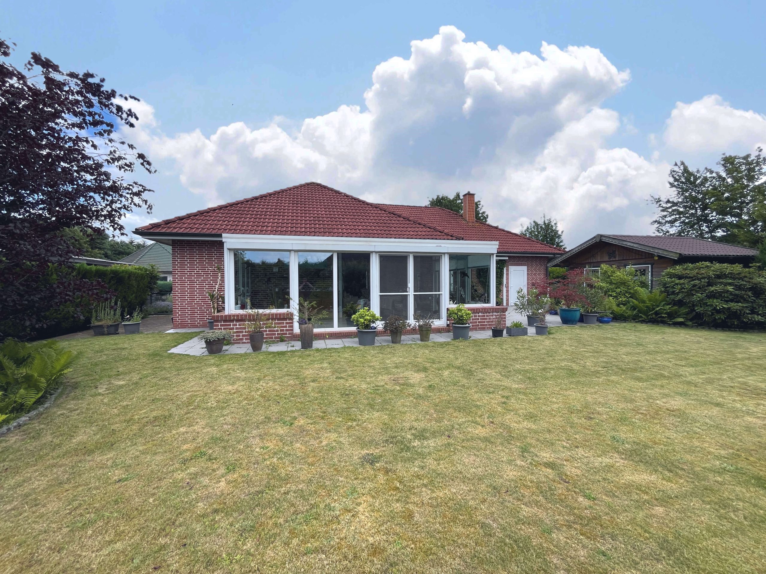 Willkommen in Ihrem zukünftigen Zuhause! Dieser exklusive Winkelwalmdach-Bungalow, erbaut im Jahr 1996, bietet nicht nur eine einzigartige Architektur, sondern auch eine Fülle von modernen Annehmlichkeiten. Die Immobilie befindet sich in einer ruhigen Sackgasse in Walchum und bietet Ihnen höchste Privatsphäre auf einem großzügigen Grundstück von 807 m², das komplett eingezäunt ist.