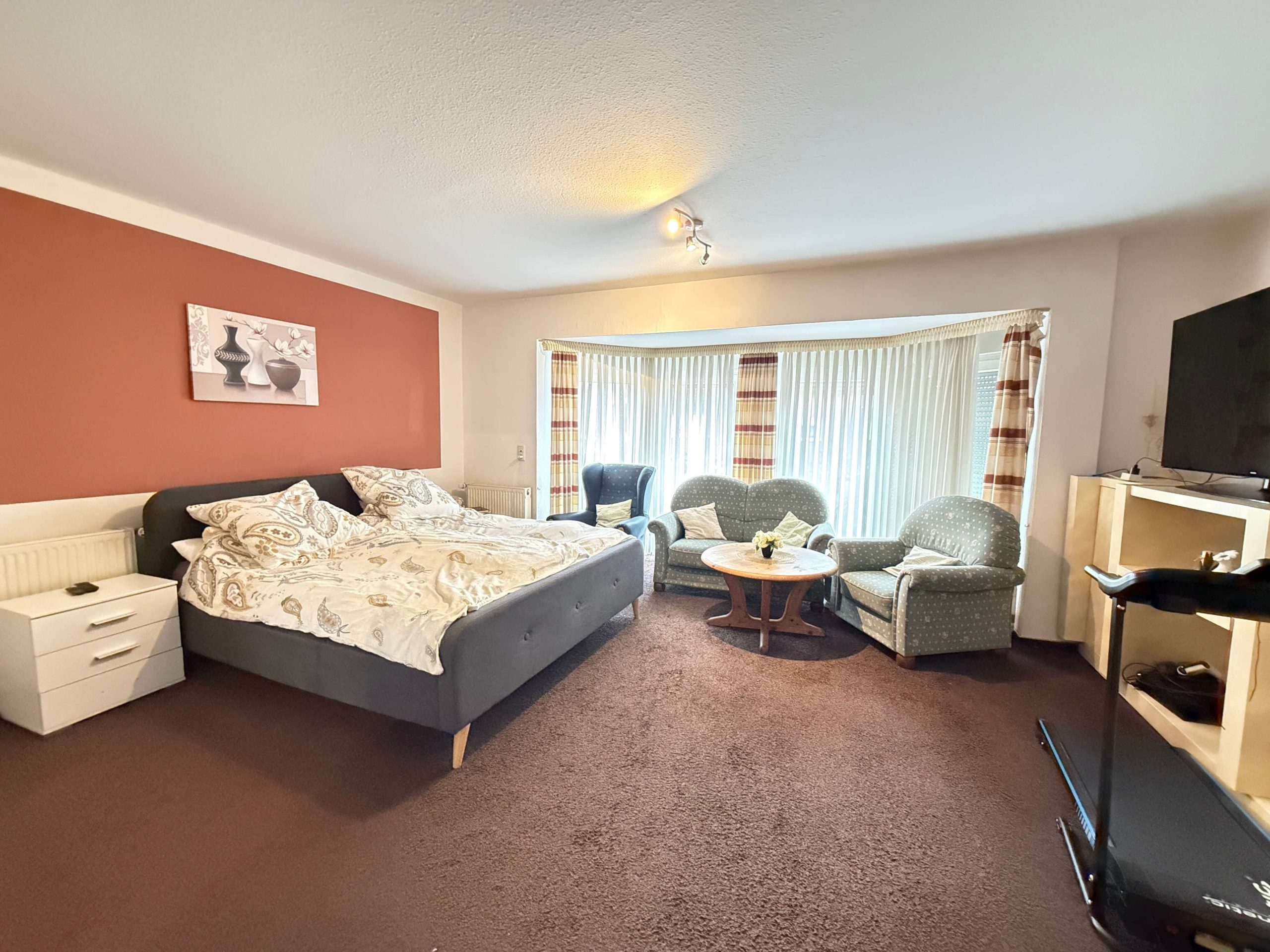 Mit einer Wohnfläche von ca. 176 m² überzeugt das Haus durch ein großzügiges Raumangebot, das sowohl für größere Familien als auch für Mehrgenerationenkonzepte oder die Kombination von Wohnen und Arbeiten unter einem Dach geeignet ist. Besonders hervorzuheben ist die durchdachte Aufteilung: Insgesamt stehen fünf Schlafzimmer zur Verfügung, zwei davon komfortabel im Erdgeschoss gelegen. Diese ebenerdige Raumstruktur eröffnet flexible Nutzungsmöglichkeiten – beispielsweise für Gäste, ein Büro oder altersgerechtes Wohnen.