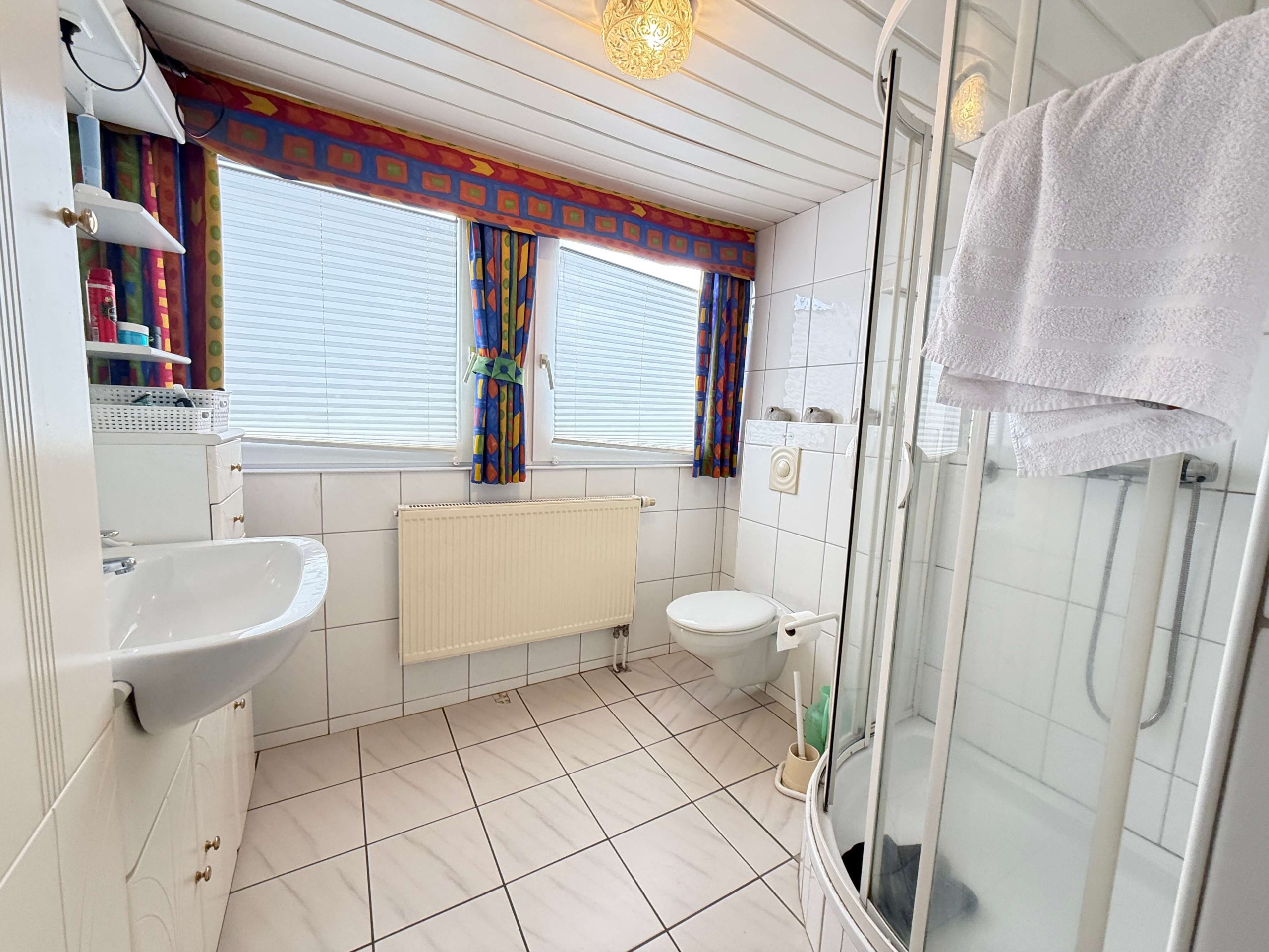 Das Badezimmer im Erdgeschoss befindet sich in einem guten, relativ neuwertigen Zustand und ist sowohl mit Dusche als auch mit Badewanne ausgestattet. Im Dachgeschoss steht zusätzlich ein Duschbad zur Verfügung, was den Komfort insbesondere bei einer größeren Personenanzahl im Haushalt deutlich erhöht. Die Räume im Dachgeschoss bieten vielseitige Nutzungsmöglichkeiten – ob als Kinderzimmer, Gästezimmer oder Arbeitsbereich.