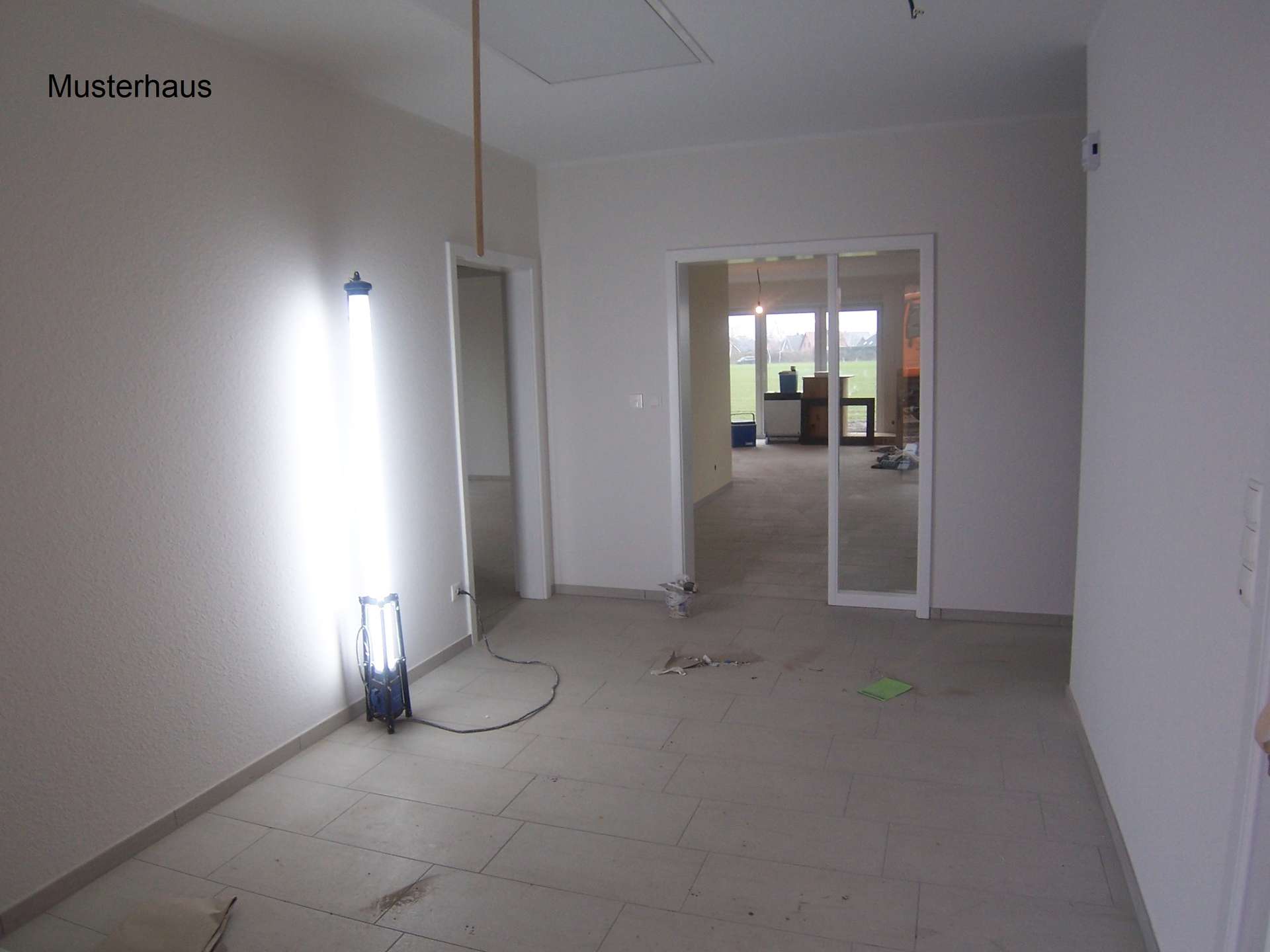 Der gesamte Erdgeschossbereich wird mit einer einheitlichen und großformatigen Bodenfliese bestückt, klasse Optik. Die Fußbodenheizung wird separat von jedem Raum aus geregelt.