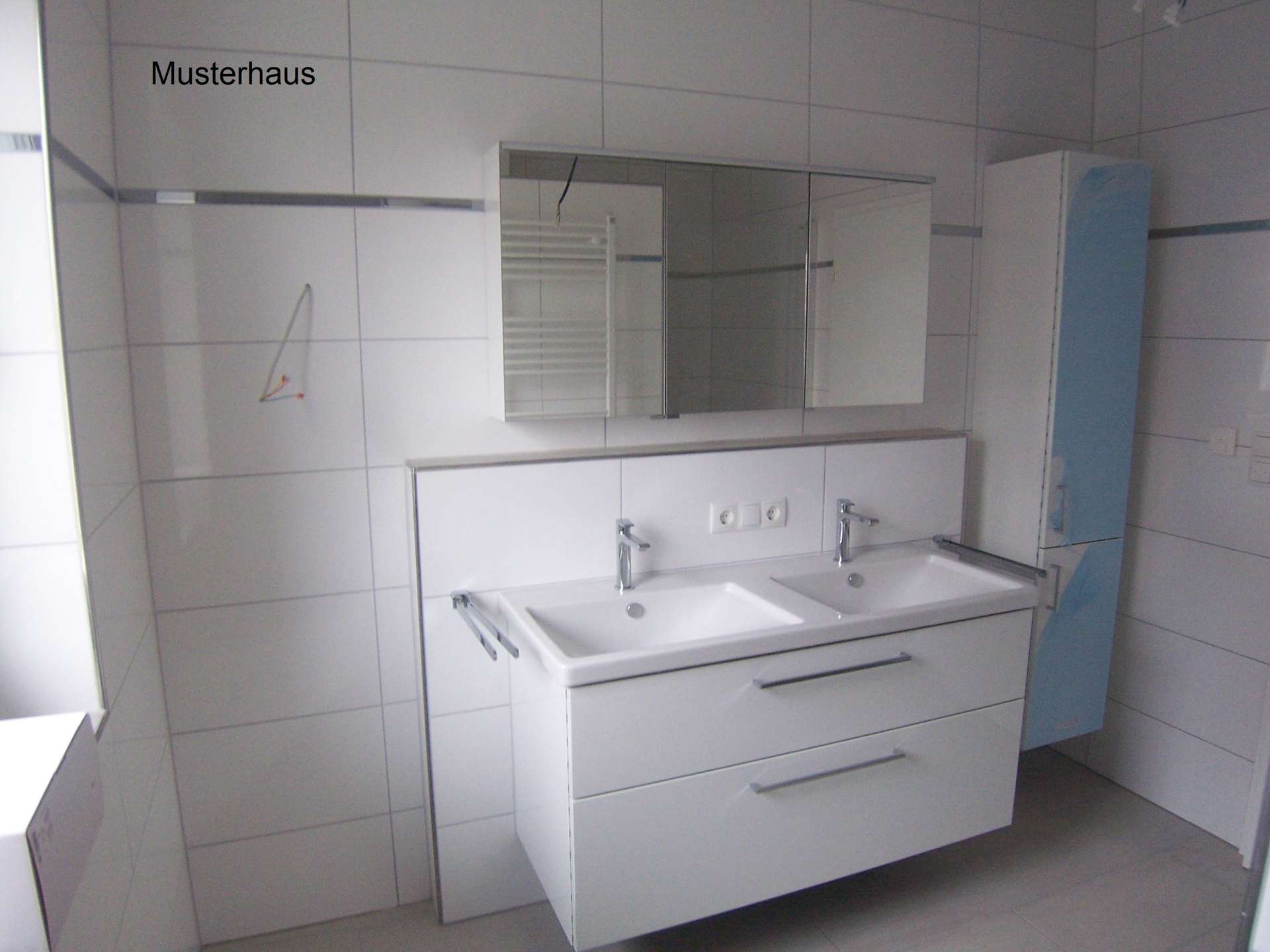 Es befinden sich ein hochwertiges Bad sowie ein Dusch-WC im Objekt. Das Hauptbad am Elternschlafzimmer (direkter Zugang ins Bad) wird wie folgt ausgestattet: bodentiefe Dusche mit Sitzbank, Hänge WC, Waschbecken mit integriertem Möbelstück plus Spiegel, Handtuchheizkörper, deckenhohe und sehr geschmackvolle Verfliesung.