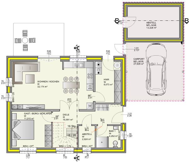 Carport mit massivem Geräteraum ca. 41,26 m²