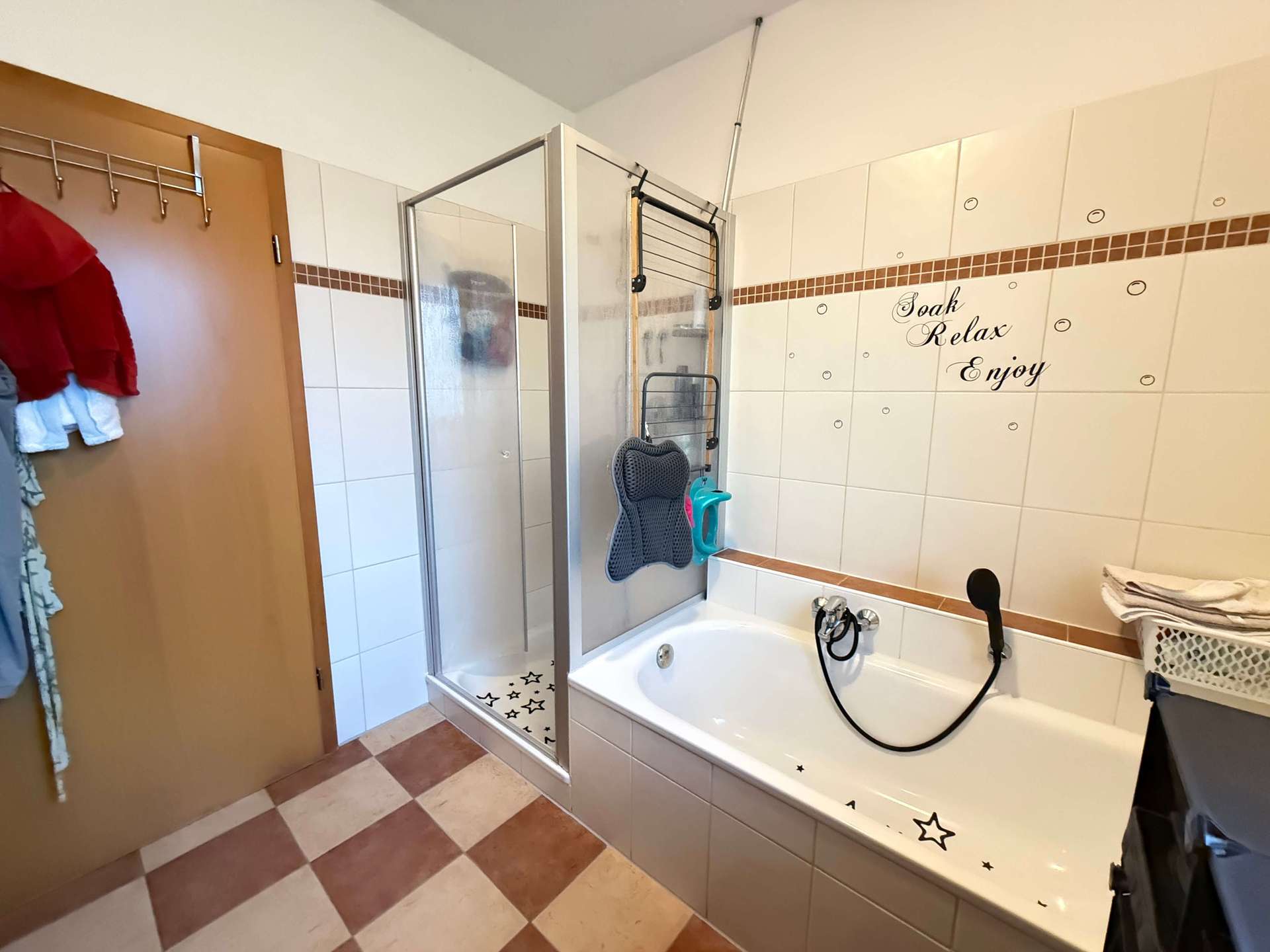 Im Inneren überzeugt der Bungalow mit einem funktionalen Grundriss. Der großzügige Wohnbereich ist mit Fliesen ausgestattet und bildet das Herzstück des Hauses. Zwei Schlafzimmer mit Laminatböden bieten ausreichend Platz für individuelle Nutzungsmöglichkeiten. Das Badezimmer ist sowohl mit einer Badewanne als auch mit einer Dusche ausgestattet und bietet somit hohen Komfort im Alltag.
