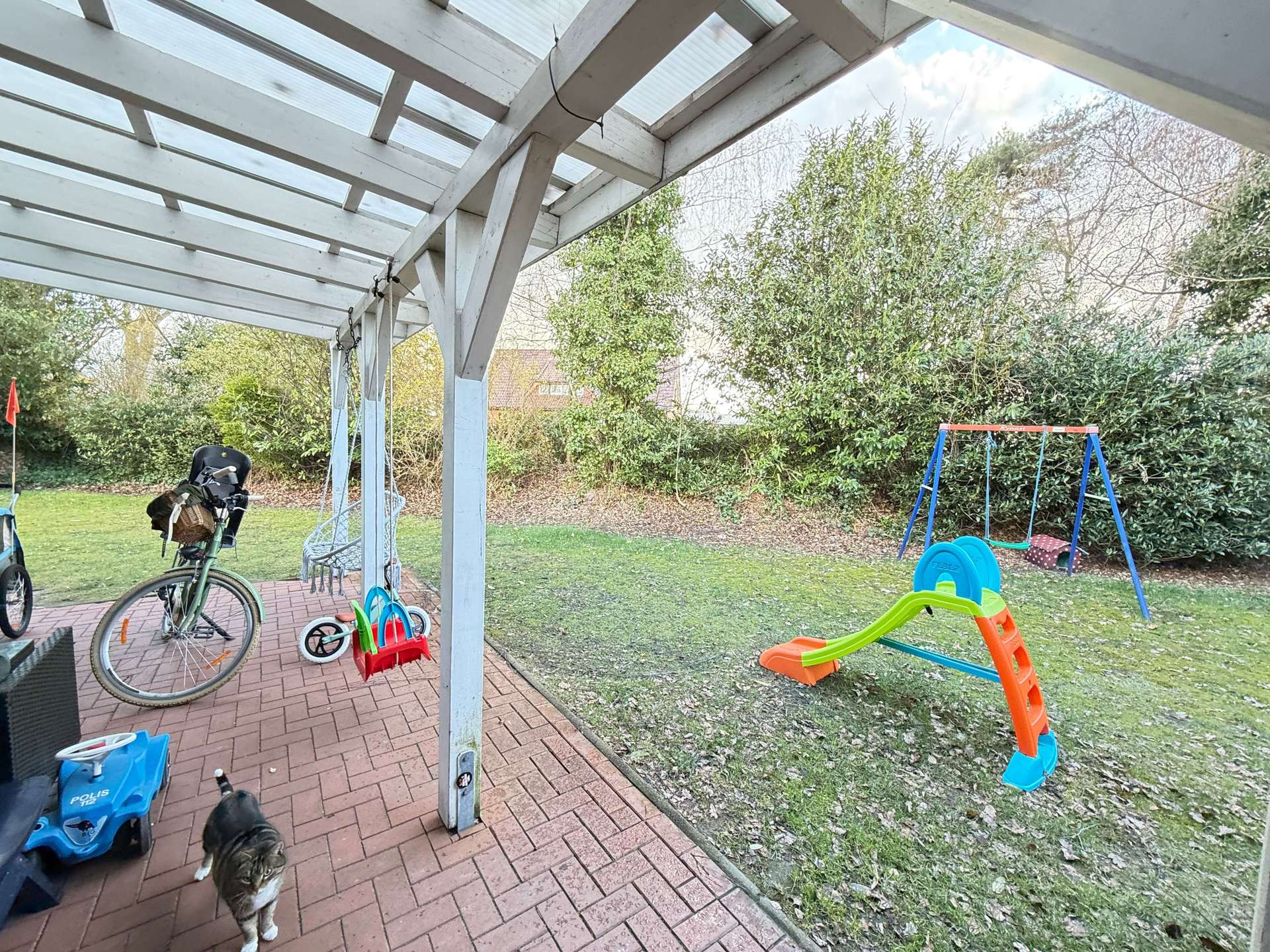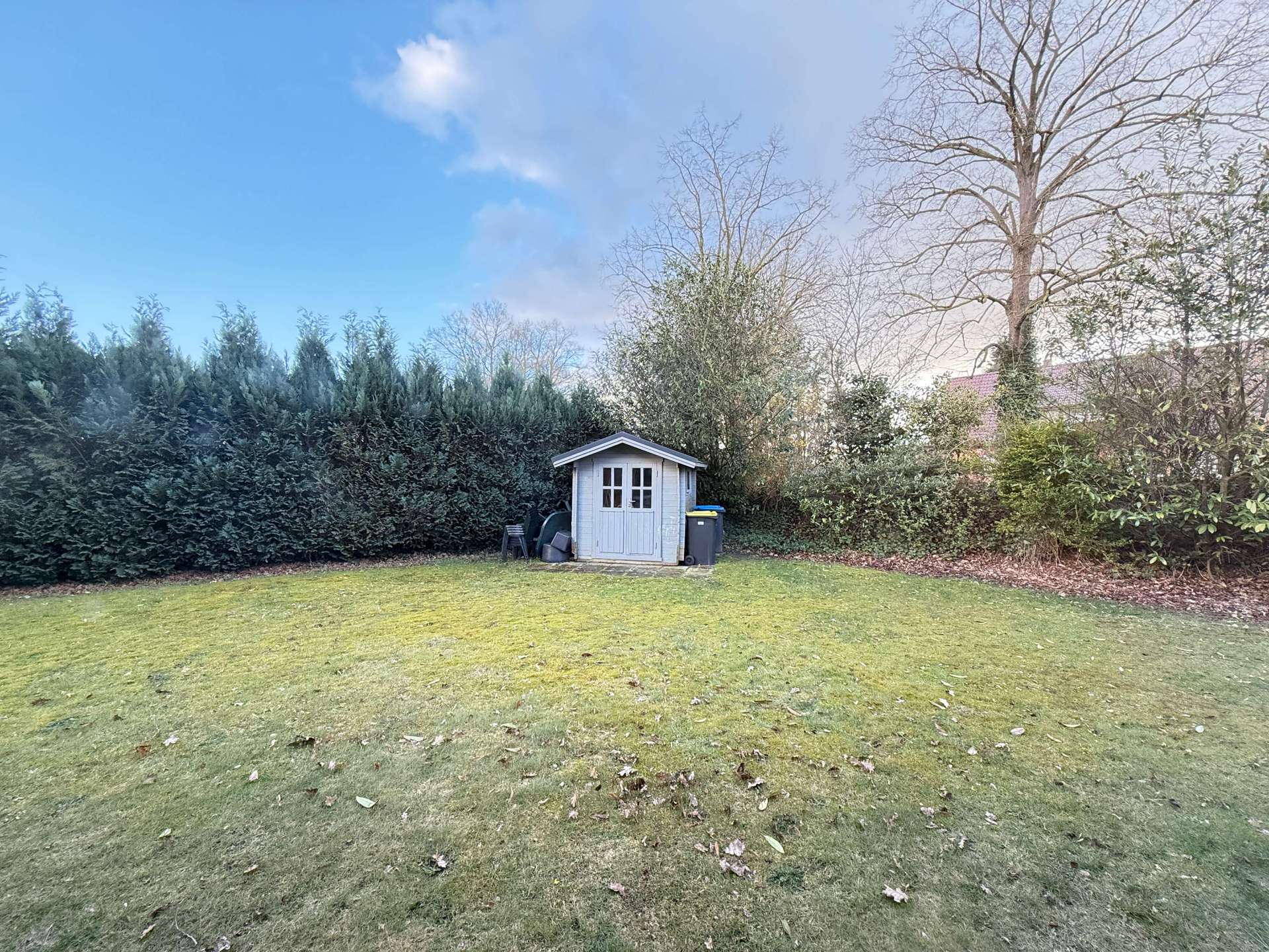 Das Haus befindet sich auf einem ca. 550 m² großen Grundstück, das durch seine uneinsehbare Gestaltung und den gewachsenen Baumbestand eine angenehme Privatsphäre bietet. Der Garten lädt mit einer überdachten Terrasse zum Entspannen ein, welche direkt vom Wohnzimmer aus zugänglich ist – ideal für gemütliche Stunden im Freien.