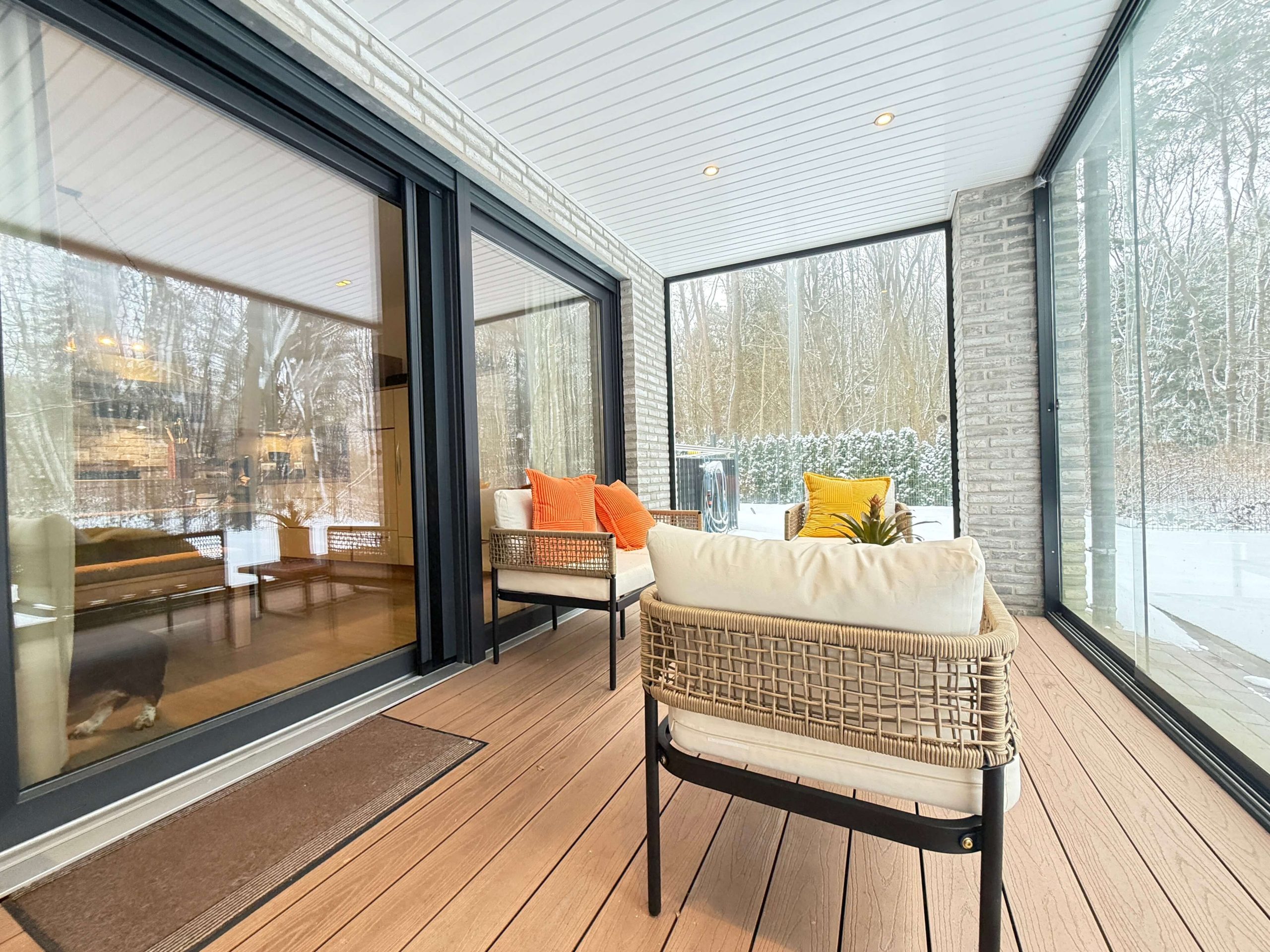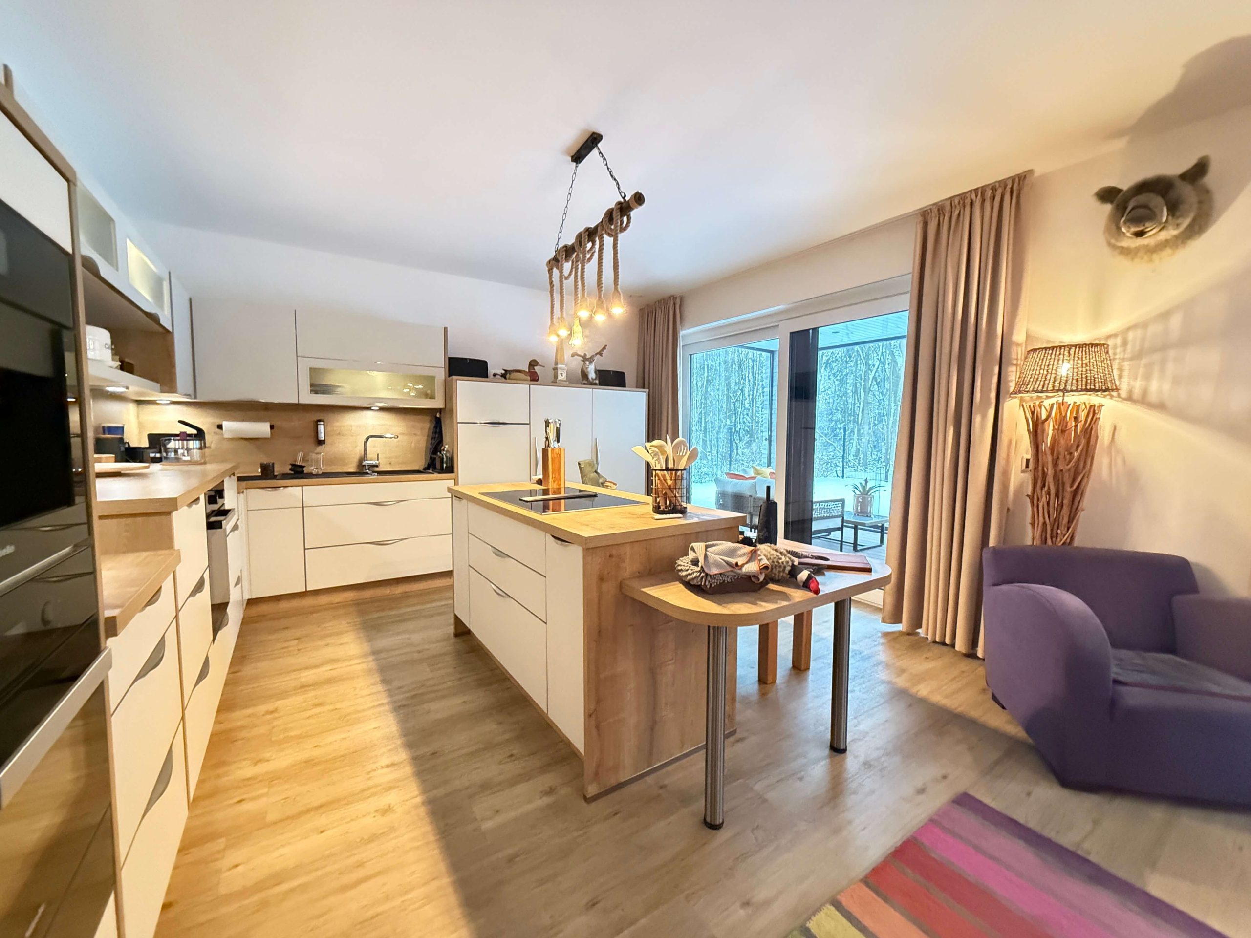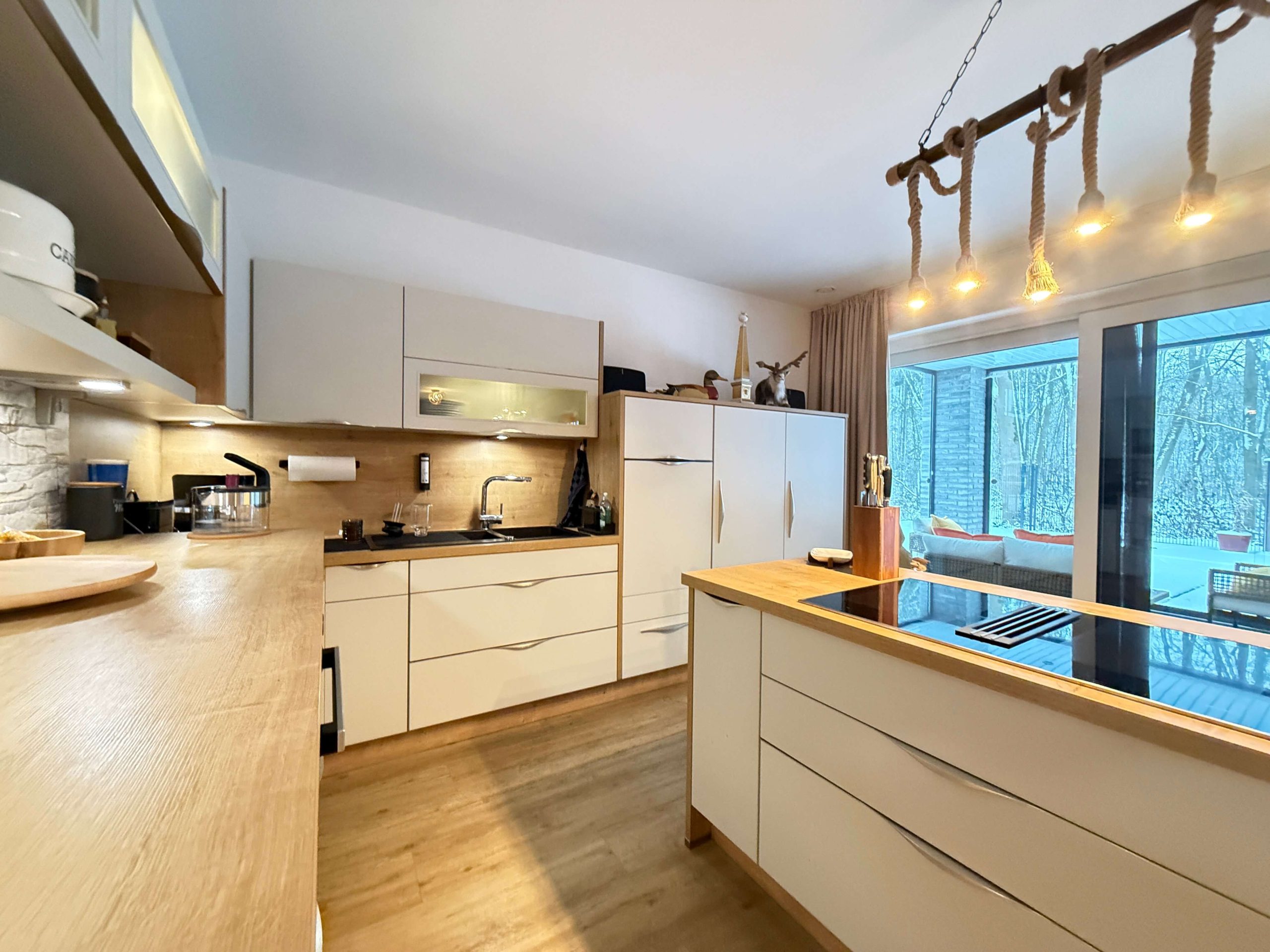 Das Herzstück der Wohnung bildet der offen gestaltete Wohn- und Essbereich mit direktem Zugang zum Sommergarten. Die exklusive, moderne Einbauküche ist bereits im Kaufpreis enthalten und überzeugt durch hochwertige Miele-Elektrogeräte, ein autarkes Kochfeld mit integriertem Dunstabzug sowie eine teilweise erhöhte Arbeitsplatte – perfekt für komfortables und ergonomisches Kochen. Über eine elegante Hebeschiebetür gelangen Sie direkt in den vollverglasten Sommergarten und weiter in den eigenen Gartenbereich.