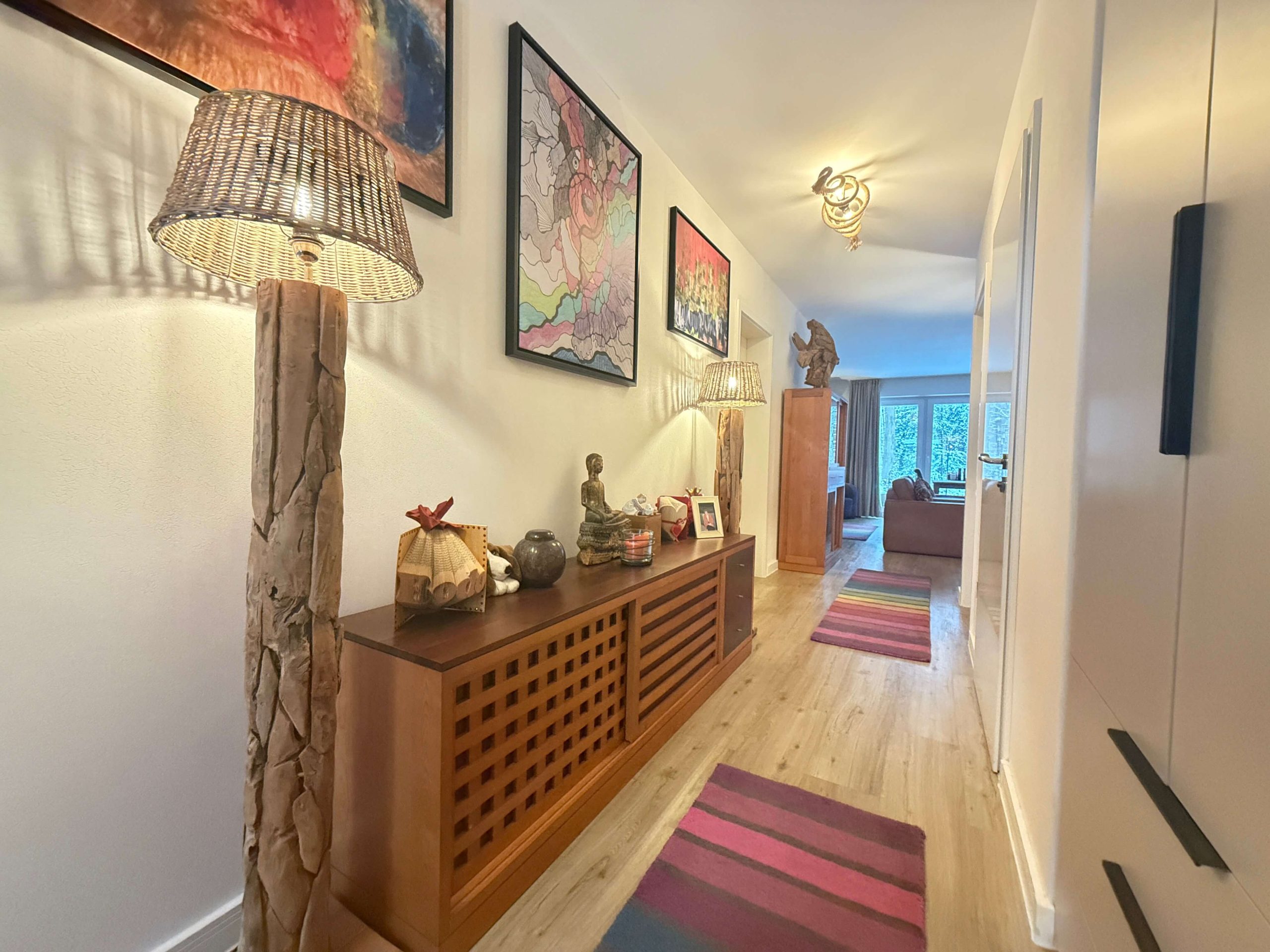 Ein echtes Highlight ist die ausschließliche Gartennutzung, die nur dieser Wohnung zugeordnet ist. Der pflegeleichte Garten mit hochwertigem Kunst-rasen bietet einen freien Blick ins Grüne und schafft eine seltene Kombination aus Wohnungskomfort und Hausgefühl – ideal zum Entspannen, Genießen oder für gesellige Stunden im Freien. Für Naturliebhaber ist ein direkter Zugang zum anliegenden Wald vorhanden, der zum Spazierengehen in die Natur einlädt.