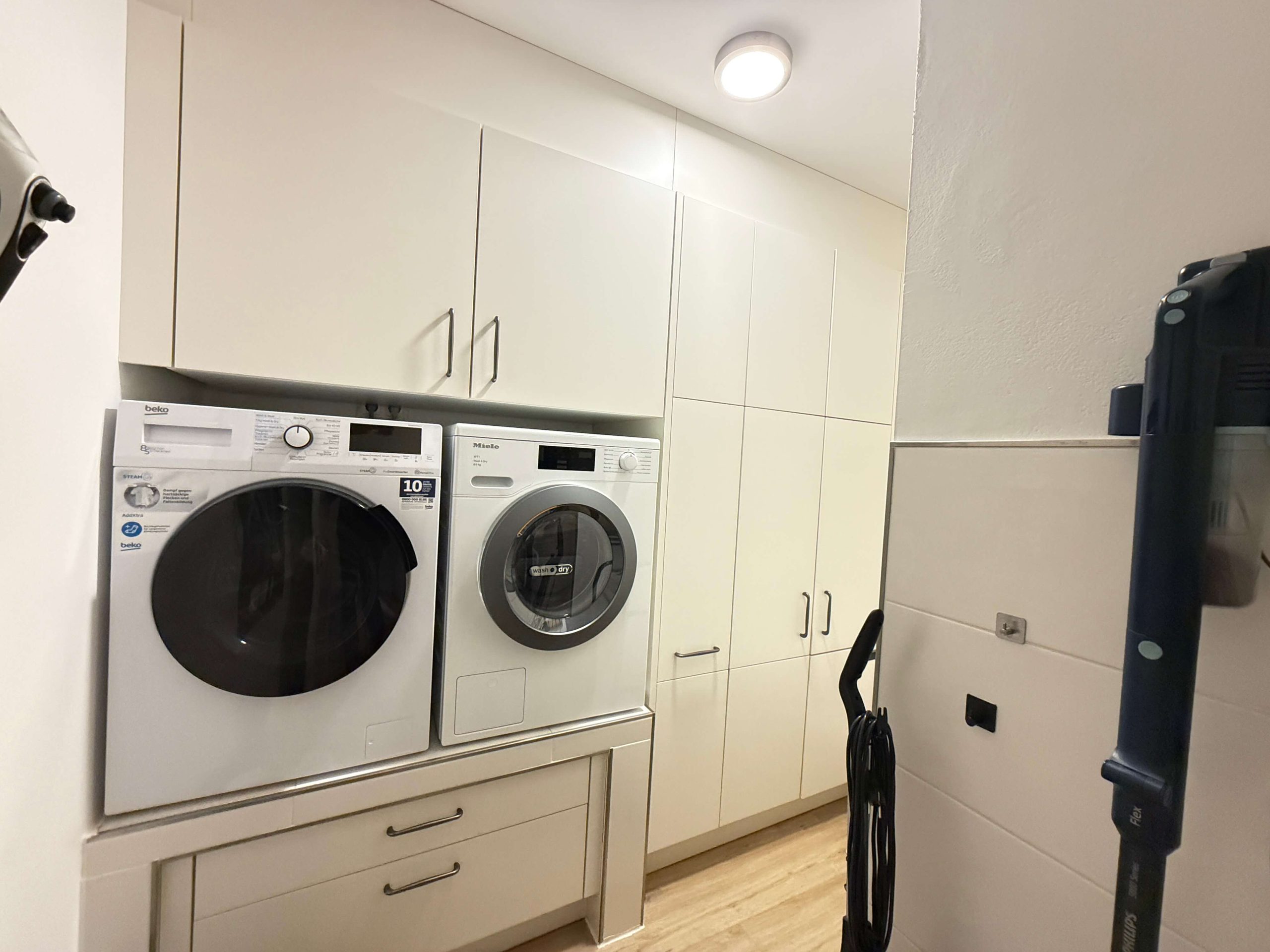 Die Wohnung verfügt über zwei Schlafzimmer, darunter ein großzügiges Hauptschlafzimmer mit maßgefertigtem, hochwertigem Kleider-Einbauschrank, der ebenfalls im Kaufpreis enthalten ist. Ein weiteres Zimmer eignet sich ideal als Gäste-, Arbeits- oder Kinderzimmer.