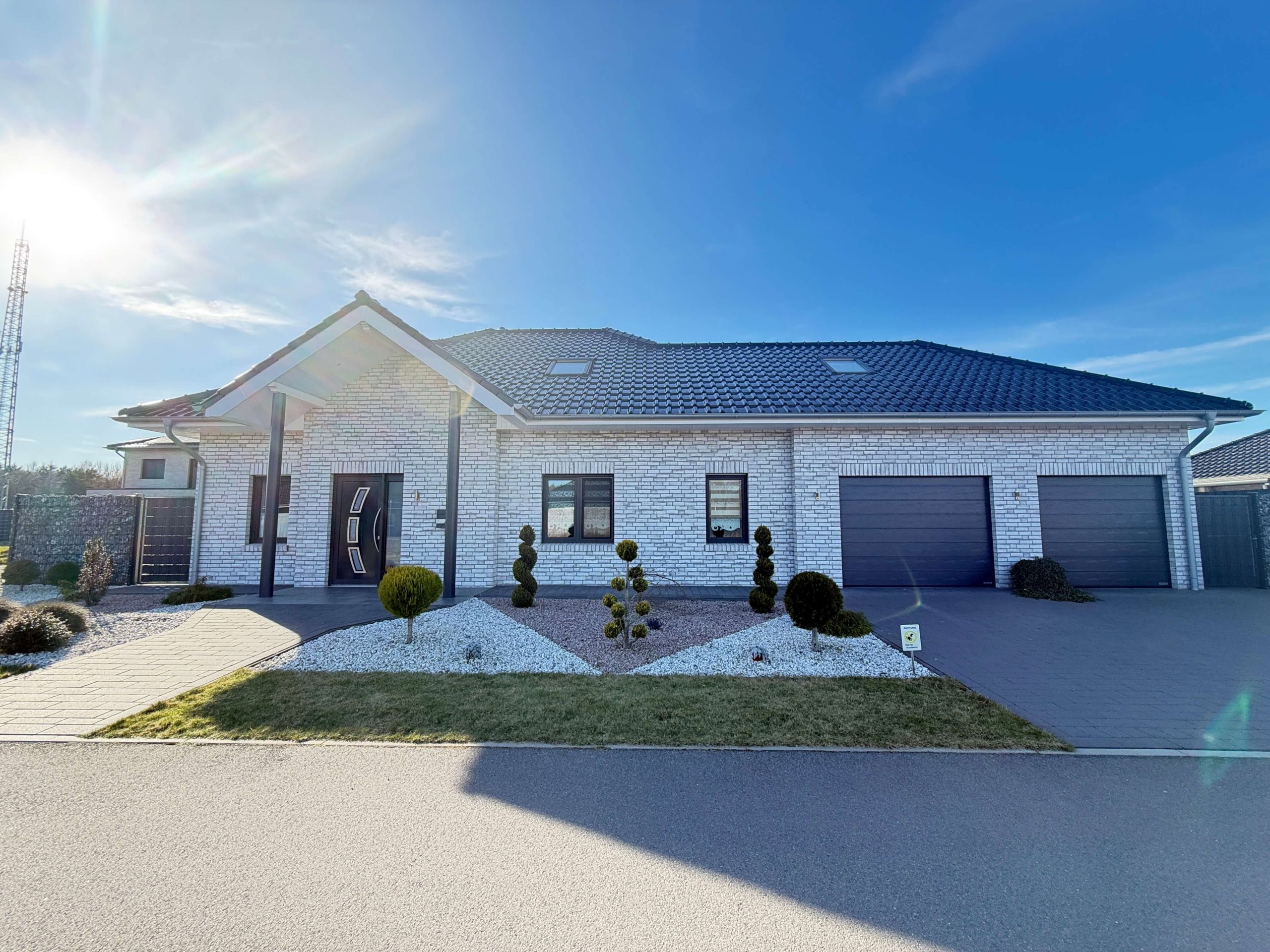 In bevorzugter Wohnlage von Lathen präsentiert sich dieser im Jahr 2022 errichtete Bungalow als architektonisch durchdachtes Zuhause mit rund 190 m² Wohnfläche auf einem ca. 625 m² großen Grundstück. Das Objekt überzeugt durch einen nahezu neuwertigen Gesamtzustand, hochwertige Materialien sowie eine konsequent moderne Ausstattungsphilosophie.