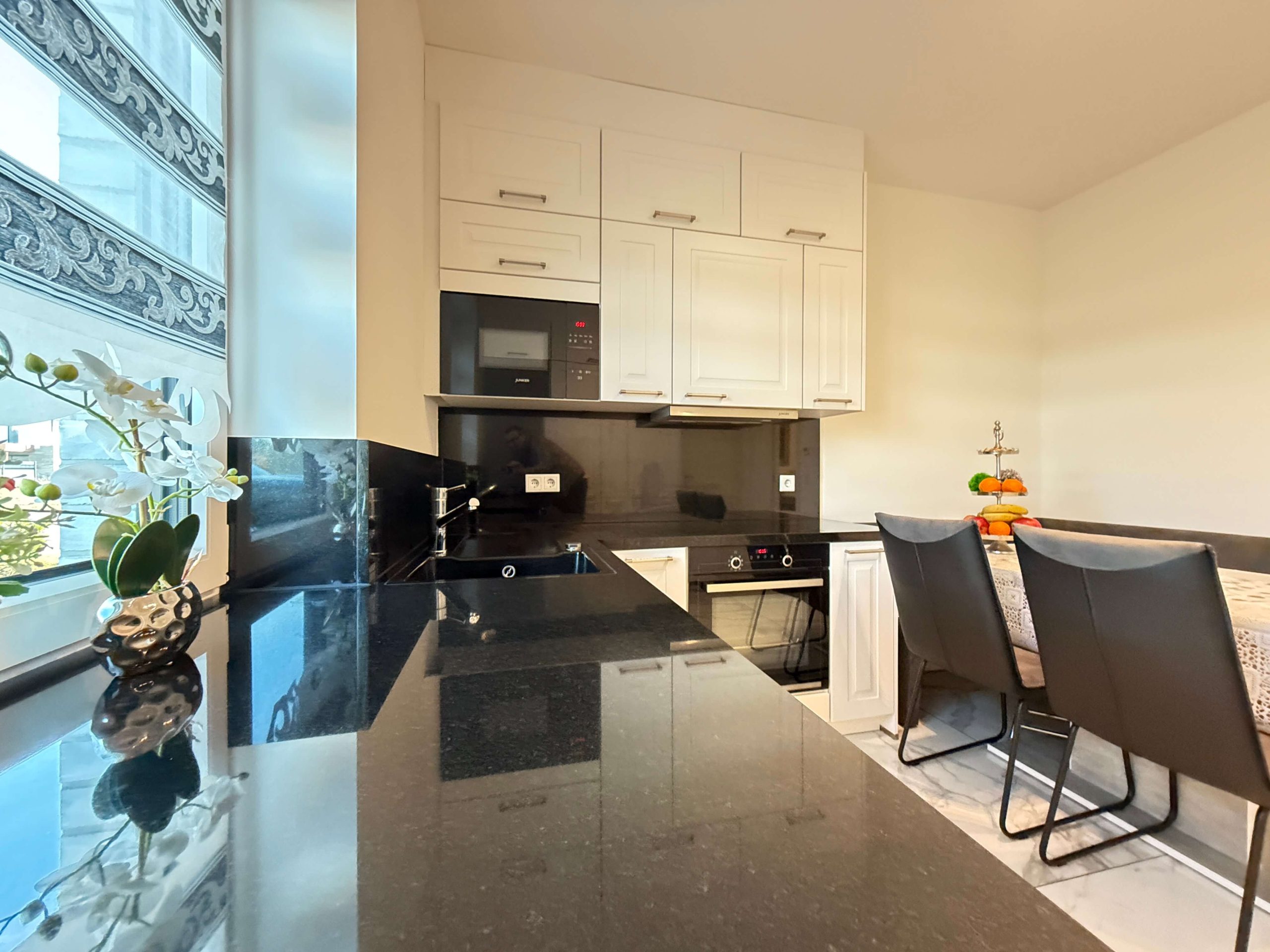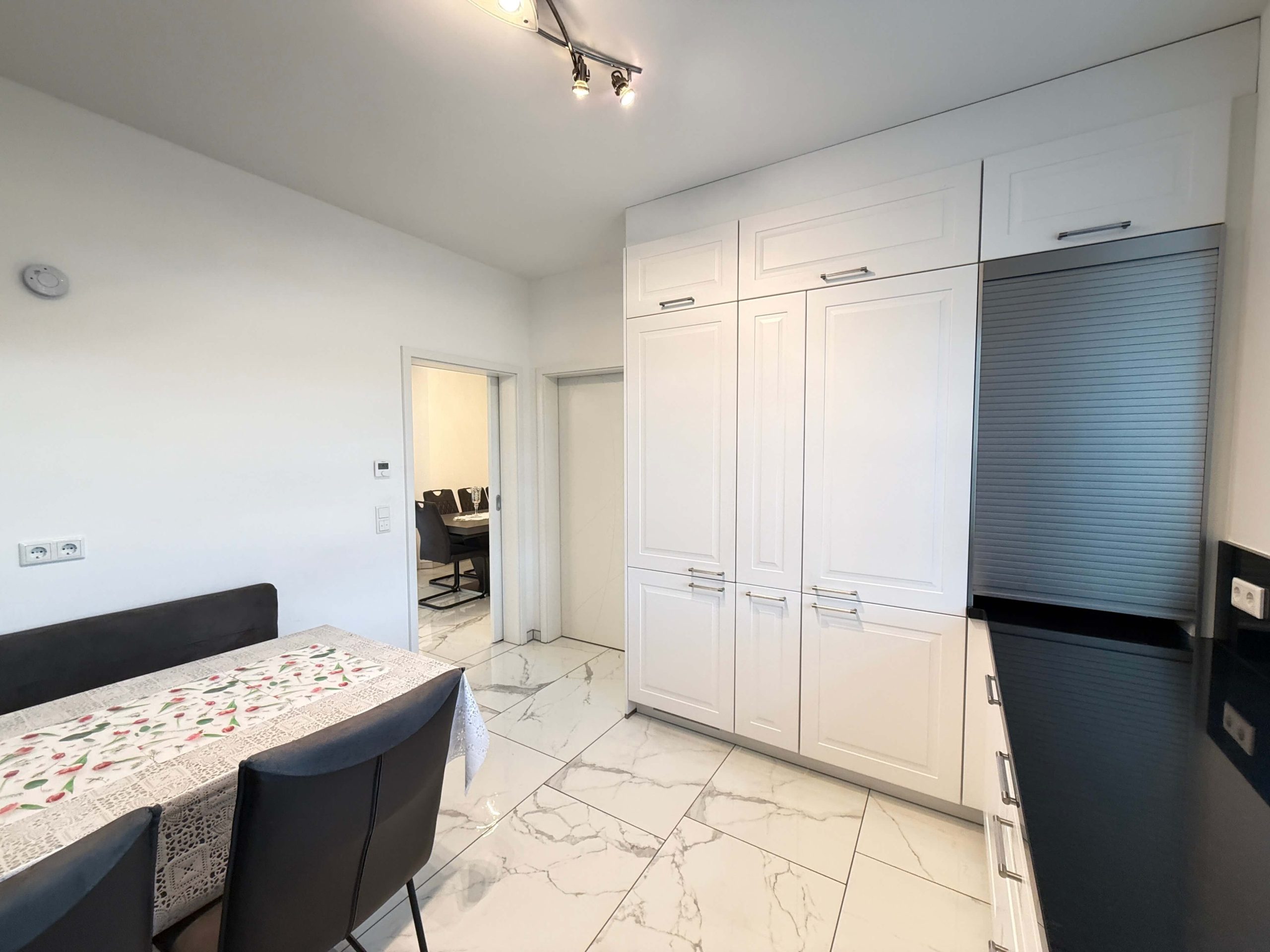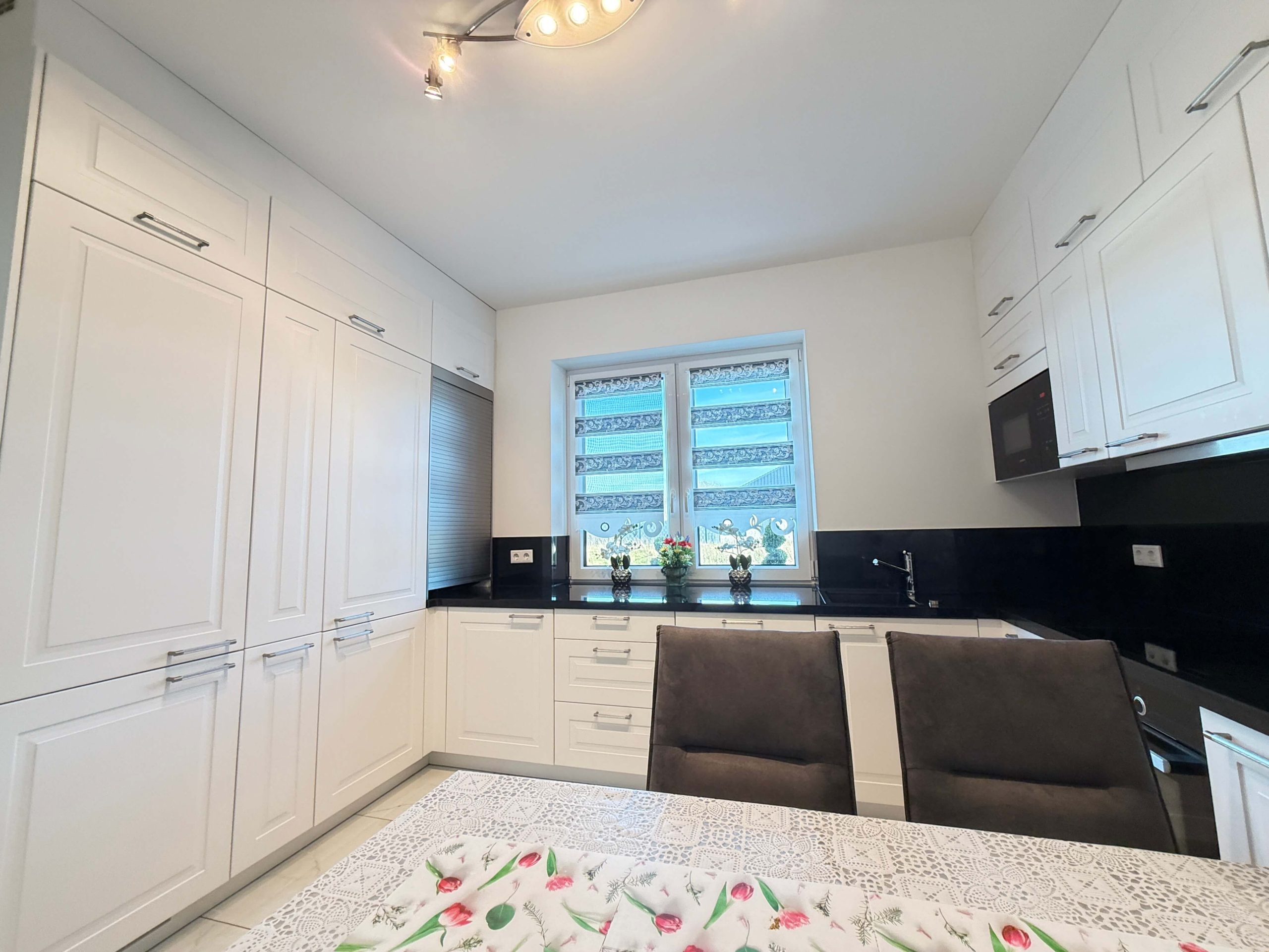 Die moderne Einbauküche ist bereits im Kaufpreis enthalten und überzeugt mit einer hochwertigen Granitarbeitsplatte sowie erstklassigen Elektrogeräten. Funktionalität und Design gehen hier eine perfekte Symbiose ein. Praktische Einbauschränke unter der Treppe schaffen zusätzlichen Stauraum und zeigen die durchdachte Planung des gesamten Hauses.
