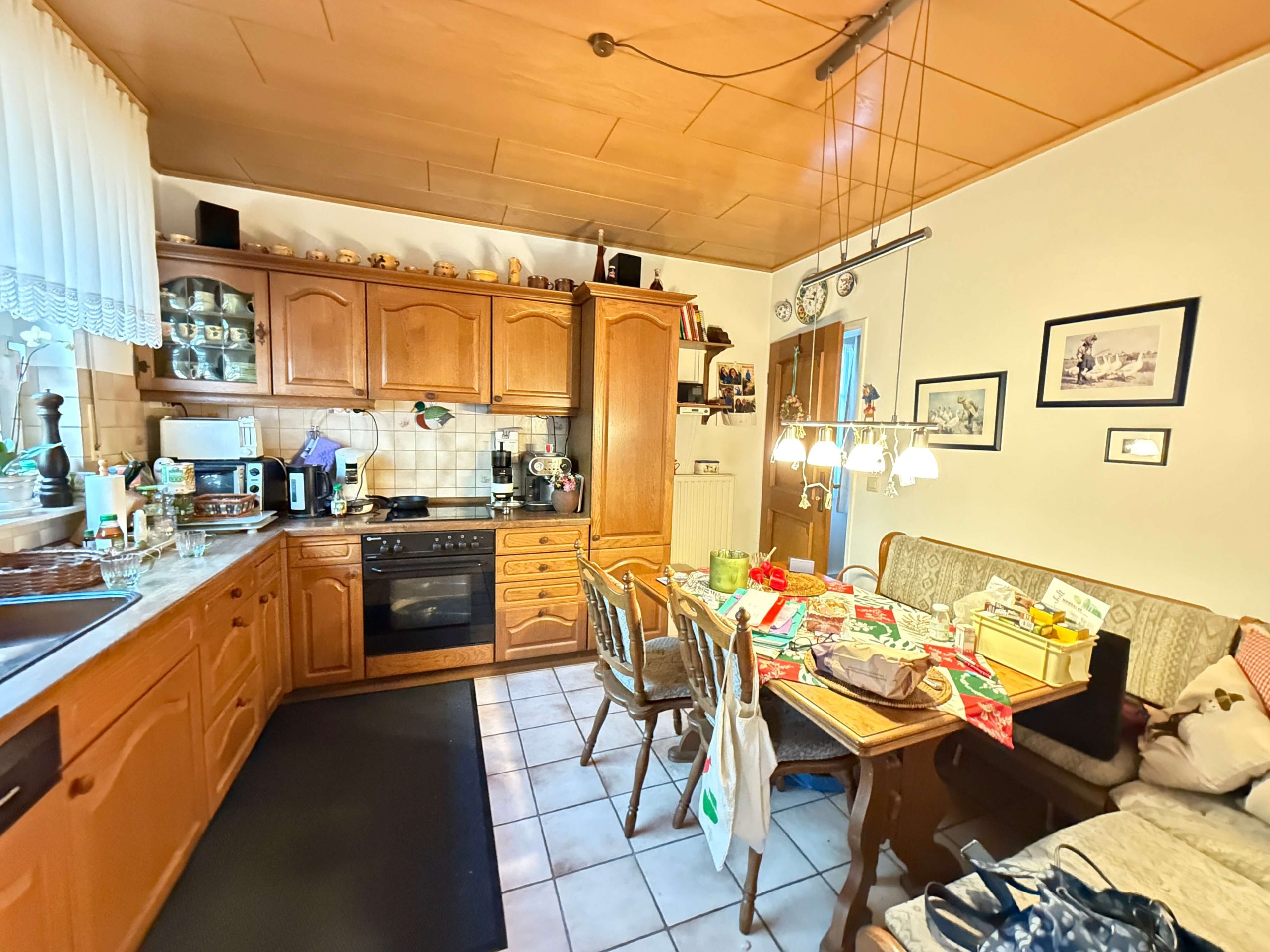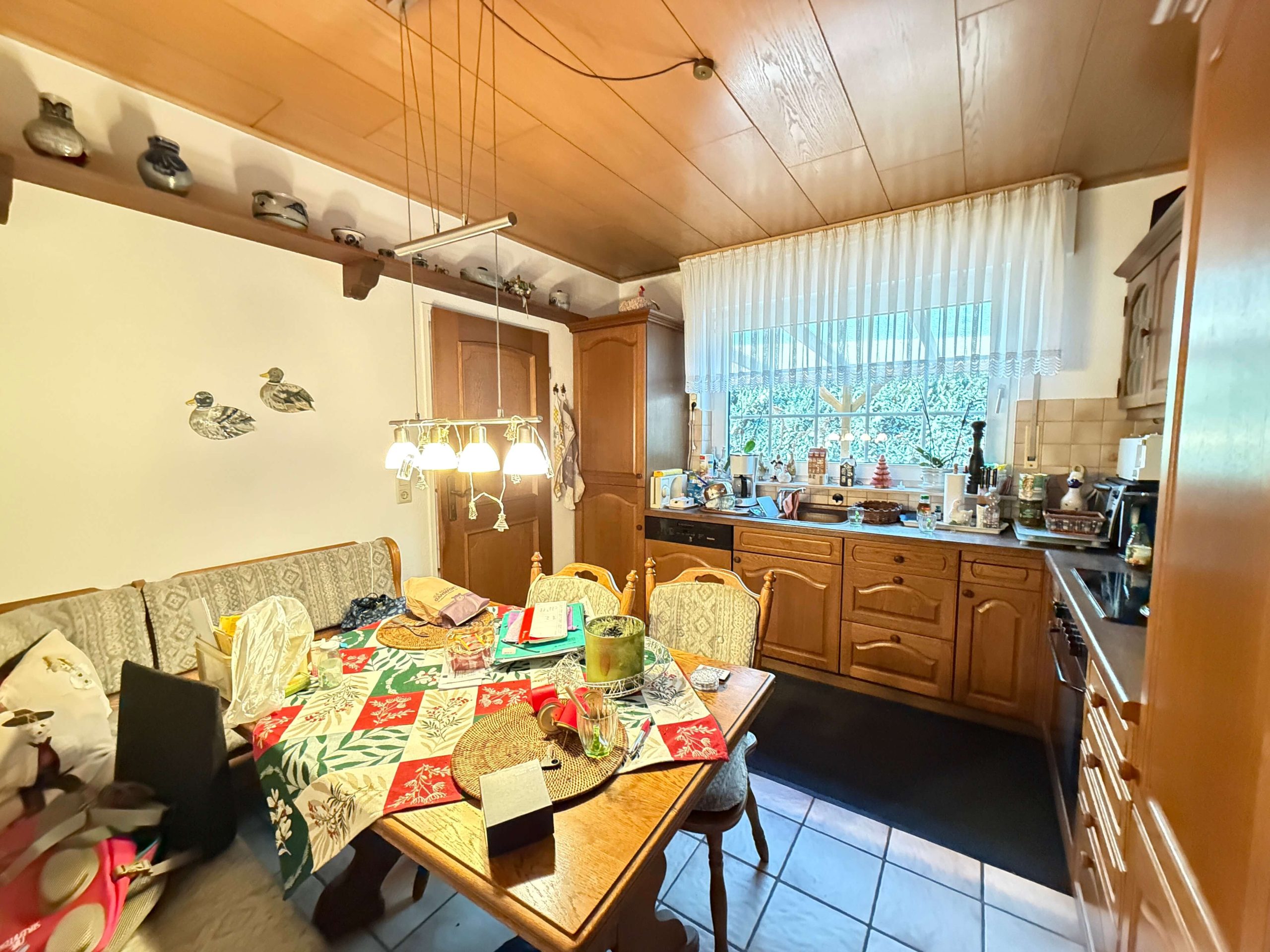 Die Küche ist mit einer älteren, jedoch funktionalen Einbauküche ausgestattet, die im Kaufpreis bereits enthalten ist. Die vorhandene Ausstattung ist zwar nicht mehr modern, jedoch gepflegt und voll nutzbar. Auch weitere Möbel im Haus können nach Vereinbarung übernommen werden. Diese sind funktional und bieten insbesondere Käufern, die einen unkomplizierten Einzug oder eine schrittweise Modernisierung planen, einen praktischen Mehrwert.