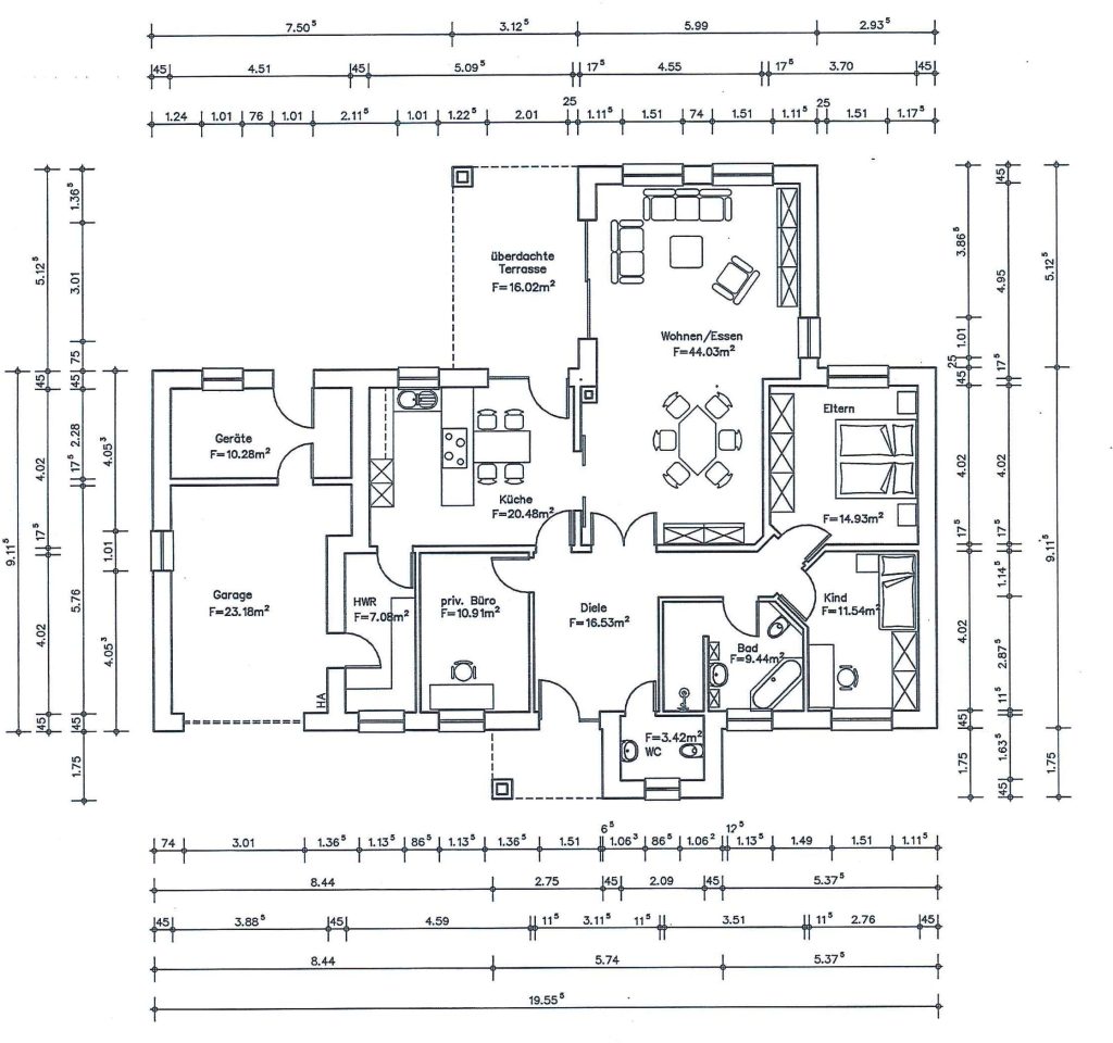 Wohnflächenaufteilung: