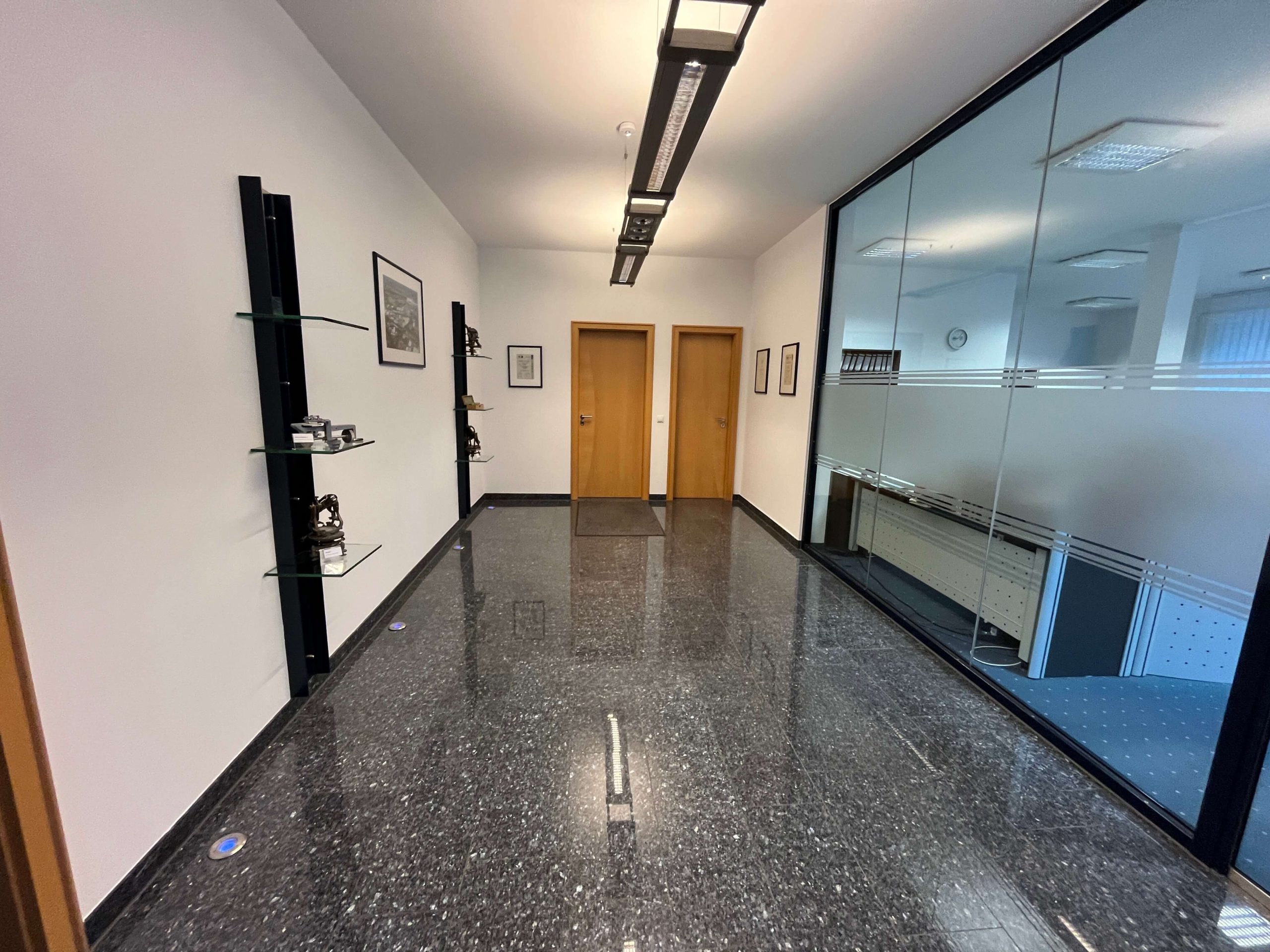 Die Räume sind hell, freundlich und flexibel nutzbar – ideal für Einzel- oder Großraumbüros, Praxisräume, Schulungs- oder Beratungsflächen. Die hochwertigen Teppichböden in den Büroräumen, kombiniert mit modernen Deckenleuchten und großen Fensterflächen, schaffen ein angenehmes Arbeitsklima.