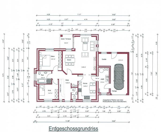 Die durchdachte Architektur überzeugt mit einer offenen, lichtdurchfluteten Raumaufteilung und eleganter Linienführung. Bodentiefe Fensterflächen sorgen für eine harmonische Verbindung von Innen- und Außenbereich, ohne Stellflächen zu verlieren. Der großzügige Wohn- und Essbereich mit Zugang zur teilüberdachten Terrasse bietet einen herrlichen Blick ins Grüne – perfekt zum Entspannen.