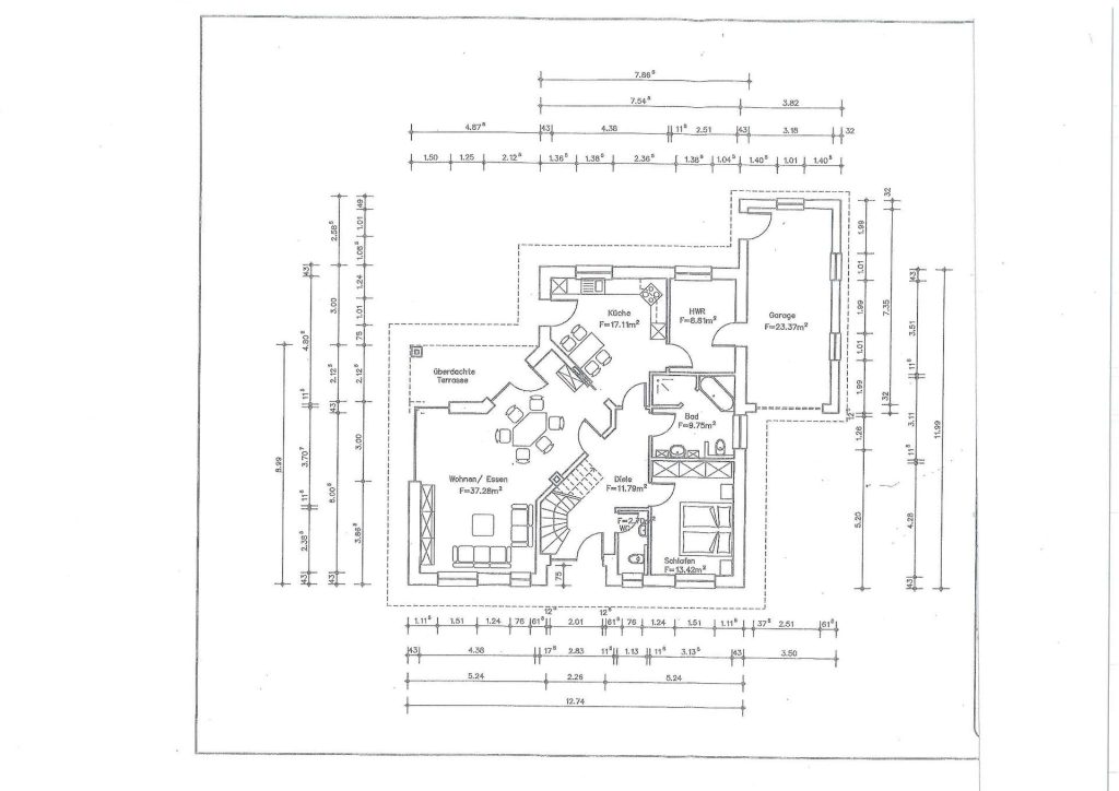Wohnzimmer/Esszimmer ca. 37,00 m²