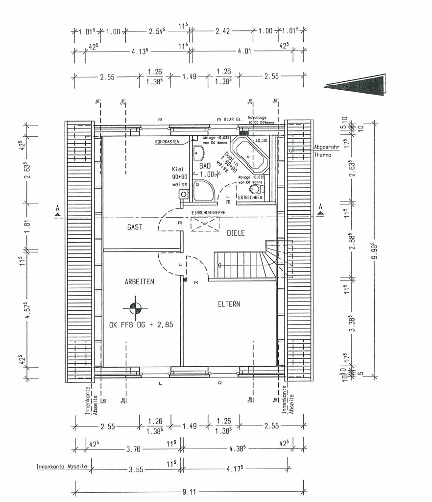 Im Obergeschoss stehen drei gut geschnittene Schlafzimmer zur Verfügung – ideal als Elternschlafzimmer, Kinderzimmer oder Homeoffice. Ein modernes Badezimmer mit Badewanne und Dusche ergänzt das Raumangebot im Dachgeschoss.