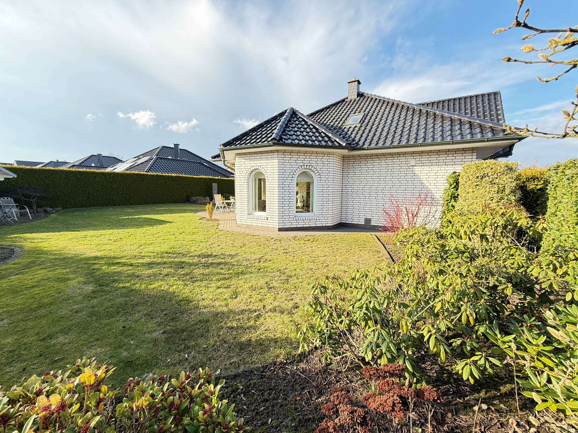 Dieser exklusive Winkelwalmdachbungalow vereint hochwertige Bauausführung, durchdachte Architektur und eine erstklassige Wohnlage in Herzlake zu einer seltenen Kaufgelegenheit. Der äußerst gepflegte Gesamtzustand ermöglicht einen nahezu sofortigen Einzug ohne Renovierungsaufwand.