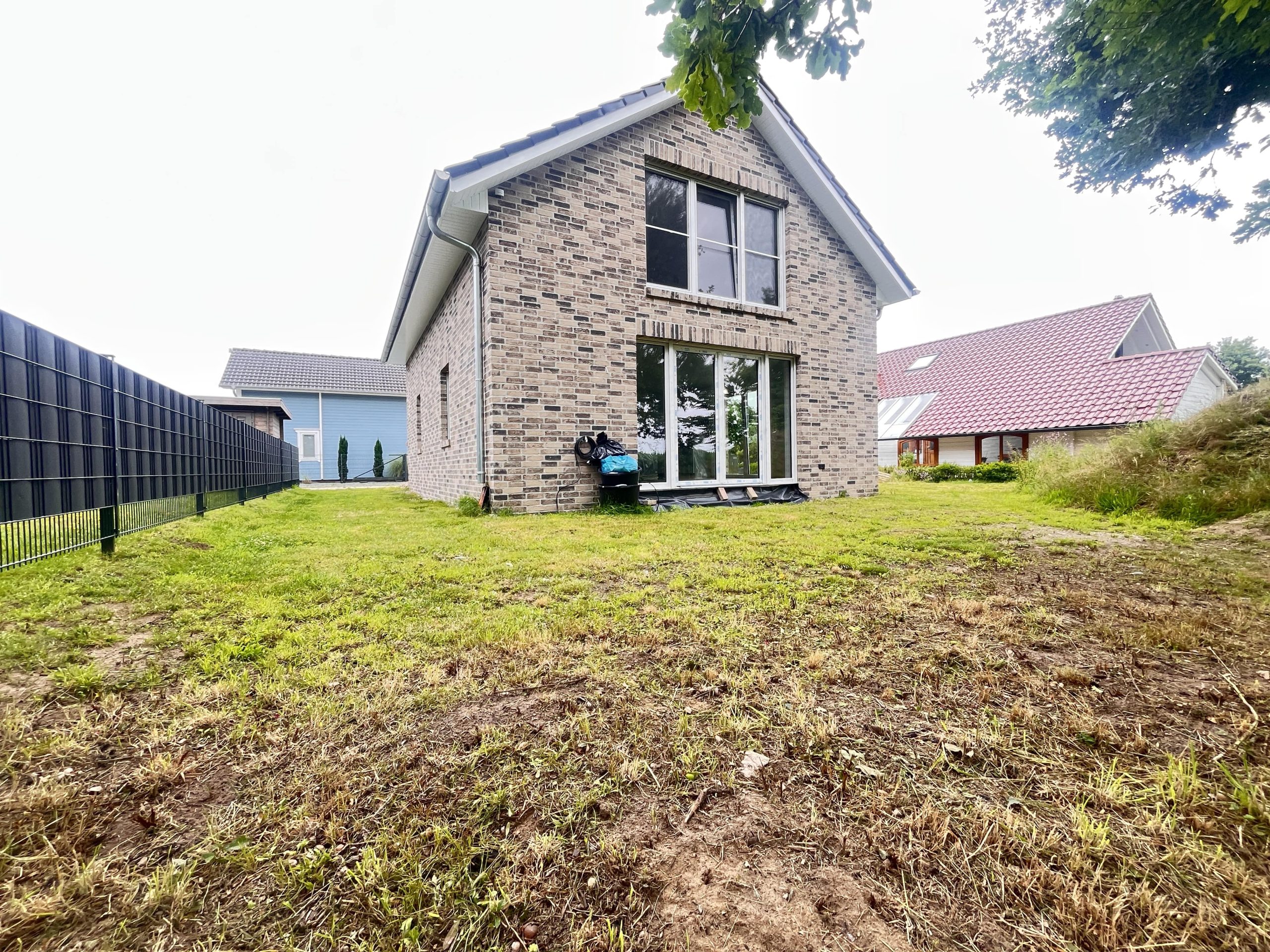 Das Gebäude wird in massiver Bauweise errichtet und mit einem stilvollen schwarzen Satteldach versehen, das dem Haus eine elegante und zeitgemäße Optik verleiht. Alle Fenster bestehen aus pflegeleichtem Kunststoff und sind mit einer hochwertigen 3-fach-Isolierverglasung ausgestattet. Zusätzlich sind sämtliche Fenster mit elektrisch betriebenen Rollläden versehen, die sich komfortabel steuern lassen und sowohl Sicht- als auch Wärmeschutz bieten.