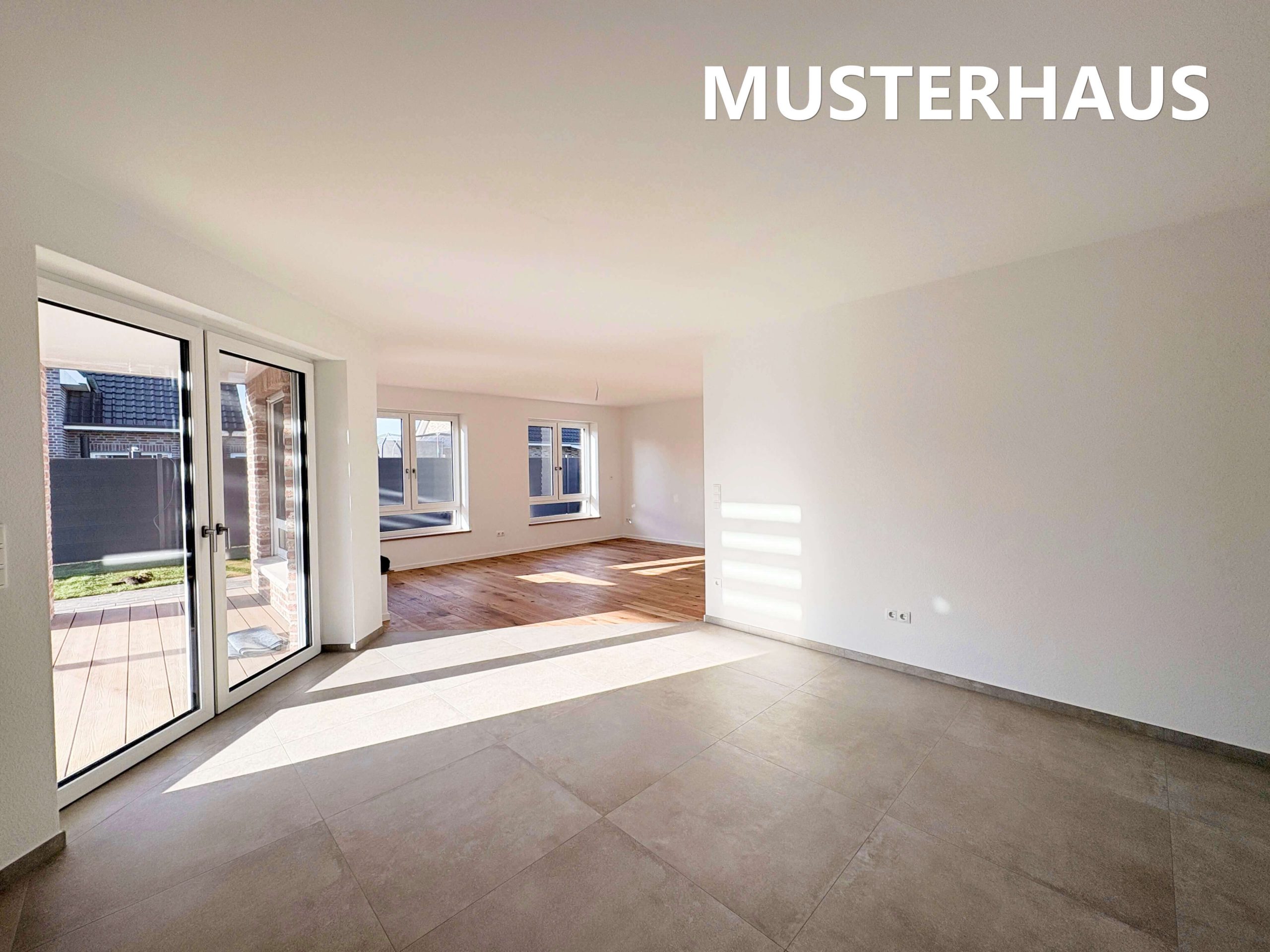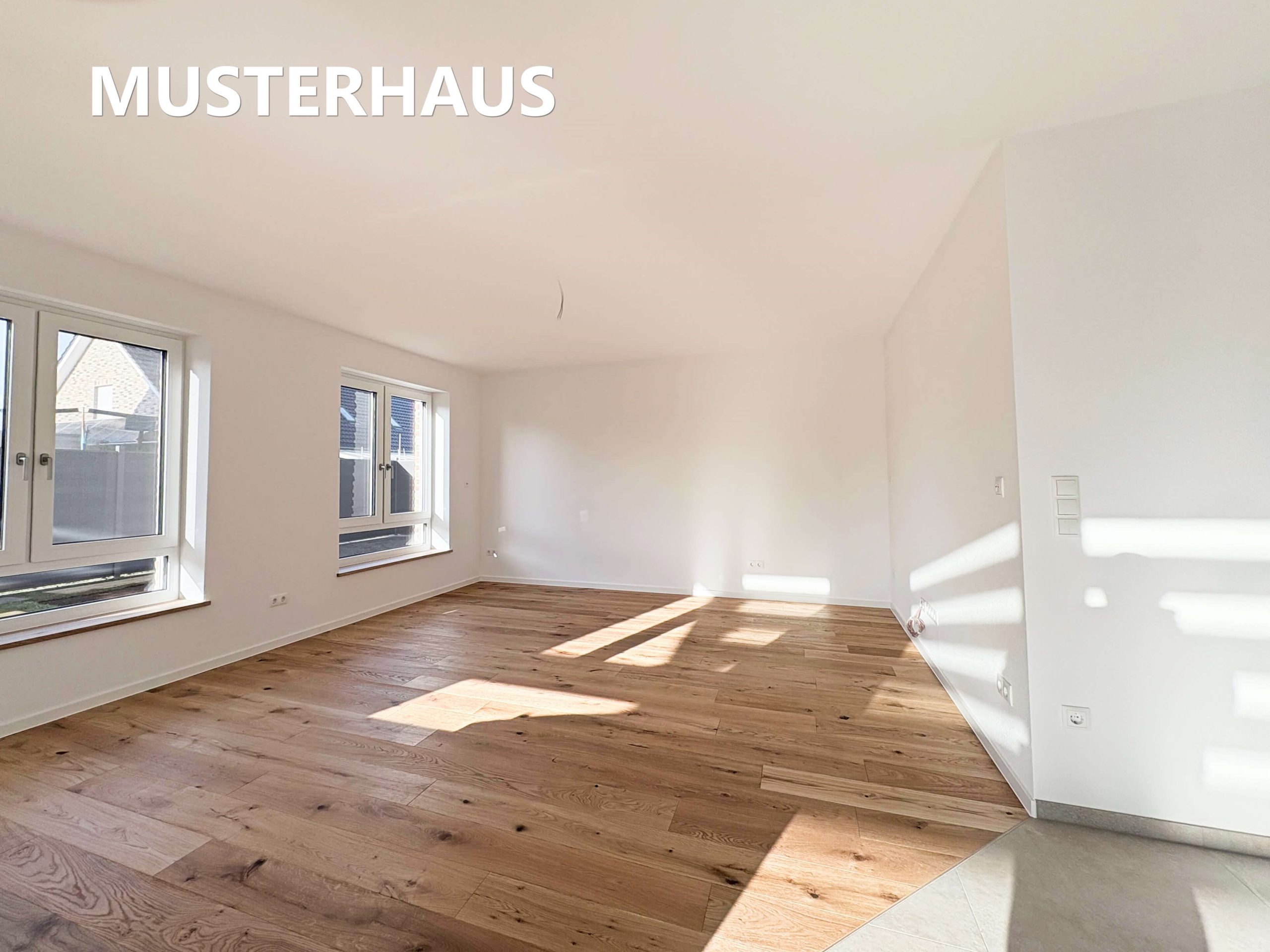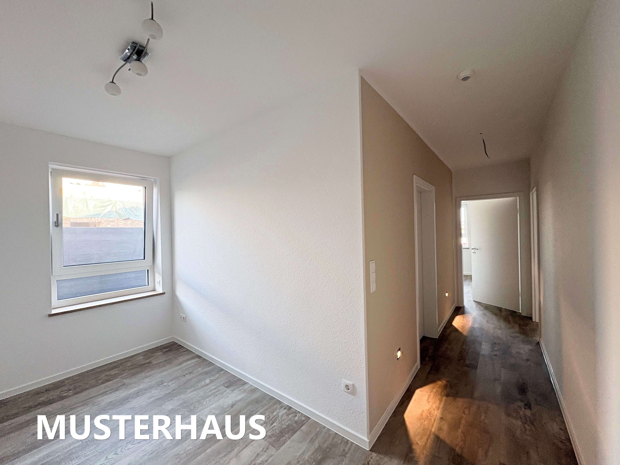 Sämtliche Decken und Wände werden mit hochwertiger Raufaser tapeziert und weiß gestrichen. Auf Wunsch ist eine helle, dezente Farbabtönung möglich, sodass das Haus bei Übergabe bezugsfertig und neutral gestaltet ist.